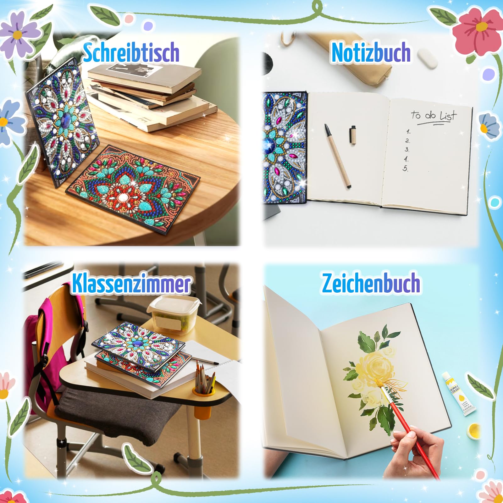 pearoft Basteln Mädchen 7 8 9 10 Jahre, Geschenke Mädchen 6-12 Jahre Diamant Painting A5 Notizbuch Bastelset Kinder Spielzeug ab 5-7-9-11 Jahre Geburtstagsgeschenk Tagebuch Mandalas Geschenkideen