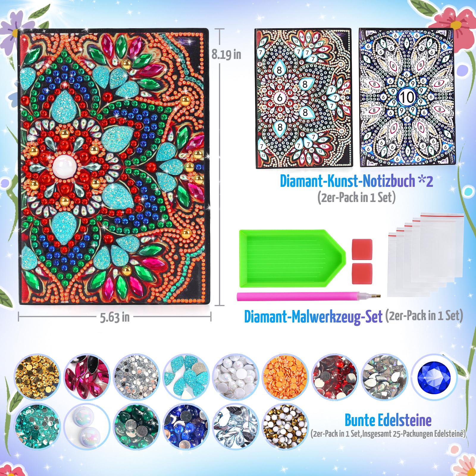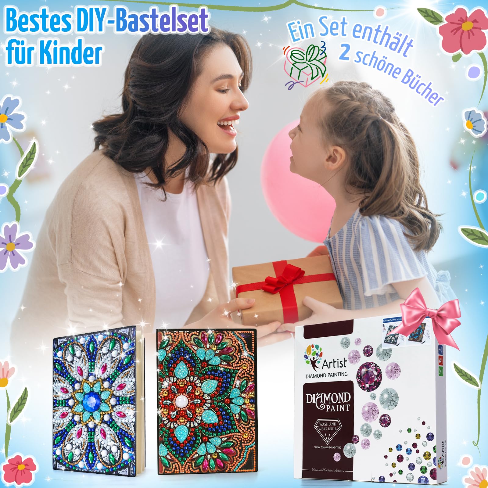 • ????【Mandala Diamant Painting Bilder Kinder】Basteln mädchen 7 8 9 11 jahre. Das kreativ set für kinder ist die Kombination aus diamond-painting und Notizbuch. Sind mit 2 Mandala Mustern gestaltet und sehr funkelnd. Das kinderspielzeug steckt voller Kreativität und Spass beim Spielen. Wählen Sie einfach den entsprechenden Edelstein aus und fügen Sie ihn an der richtigen Stelle ein. Geburtstagsgeschenk für Mädchen ist ideal für die Farbwahrnehmung und weckt das Interesse am künstlerischen Schaffen.