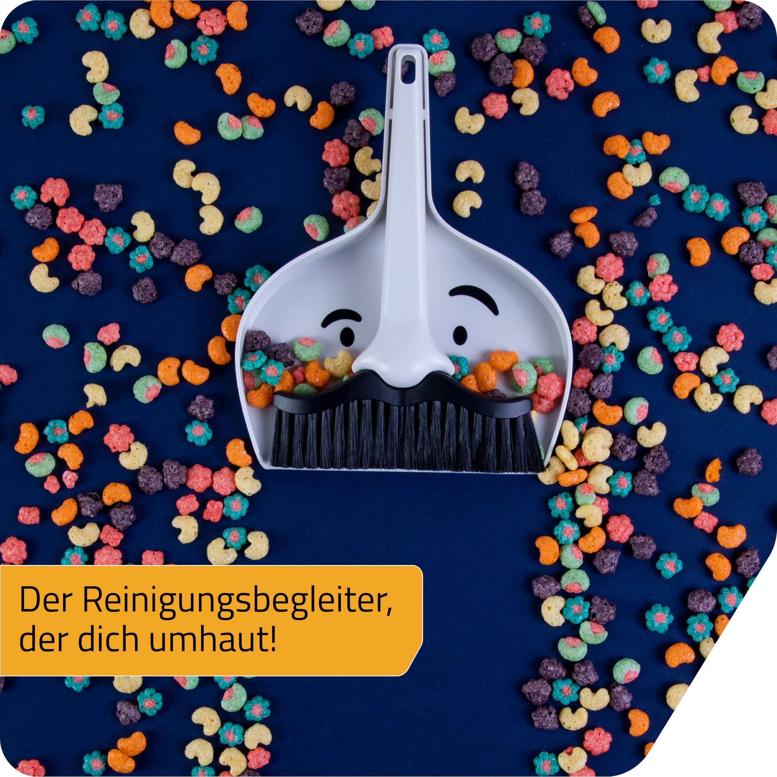 Kehre mit Spass & Stil - Die Dustache Kehrschaufel hilft Dir die Oberflächen ordentlich zu reinigen und zaubert Dir dabei gleich ein Lächeln in Gesicht! Mr. Dustasche sorgt für Ordnung und Sauberkeit in deinem Zuhause - Mit dem Dustache Tisch handfeger hat man rasch einen witzigen Helfer zur Hand