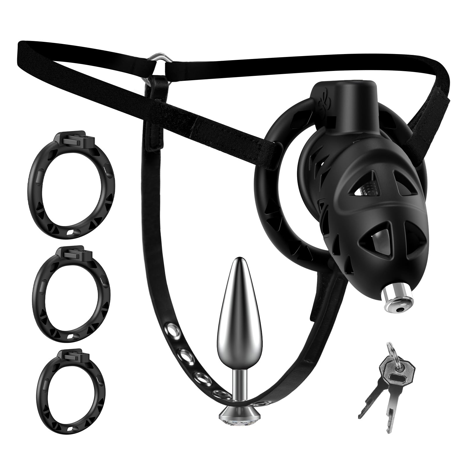 Peniskäfig Chastity Cage Sexspielzeug mit Analplug für Männer, Keuschheitskäfig Herren Gürtel mit 3 Penis Ring und Butt Plug, Ohi BoBi Sun BDSM Cock Cage Extrem Erotik Sex