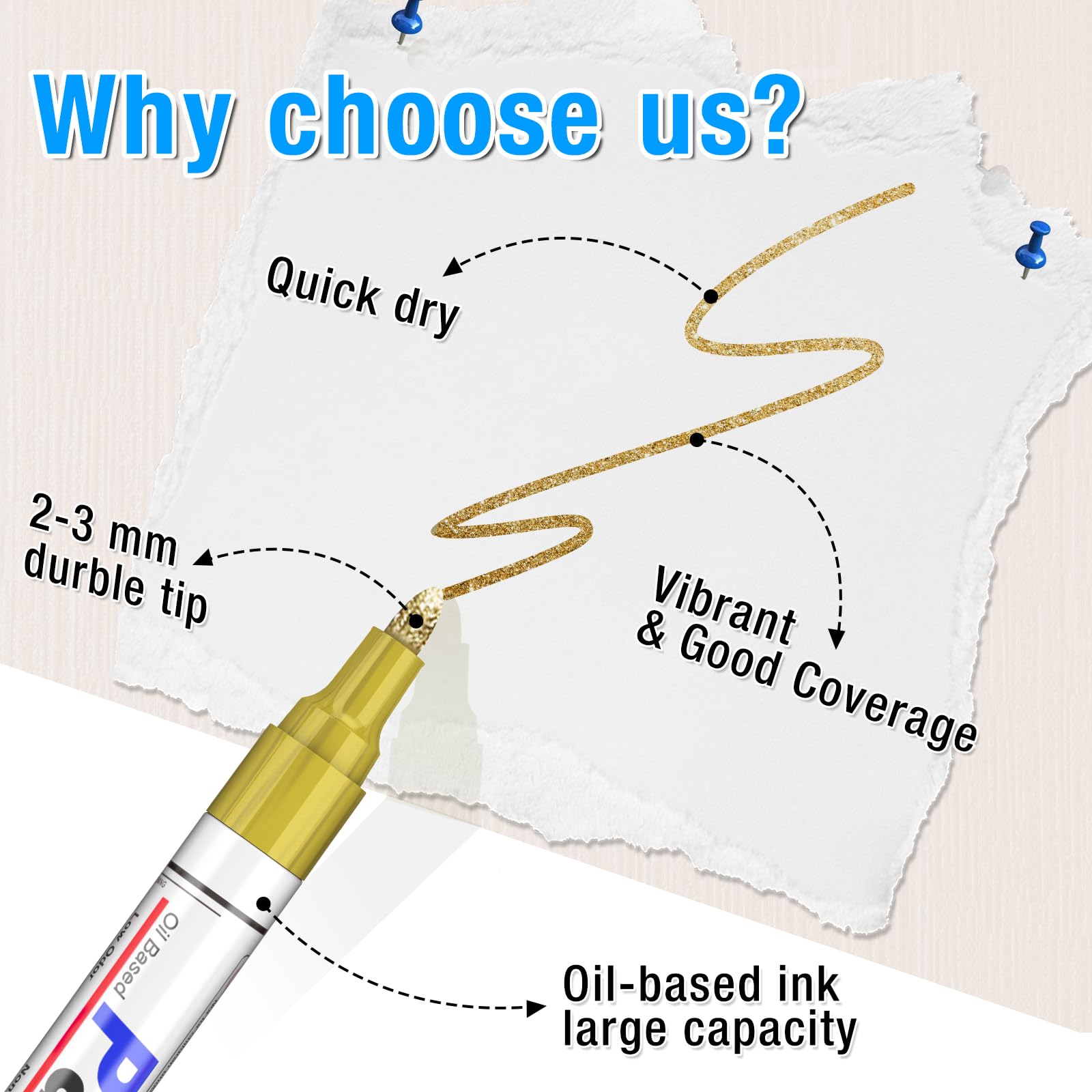 ① Qualitativ hochwertige Tinte, Leicht trocknend, wasserabweisend und farbenfroh