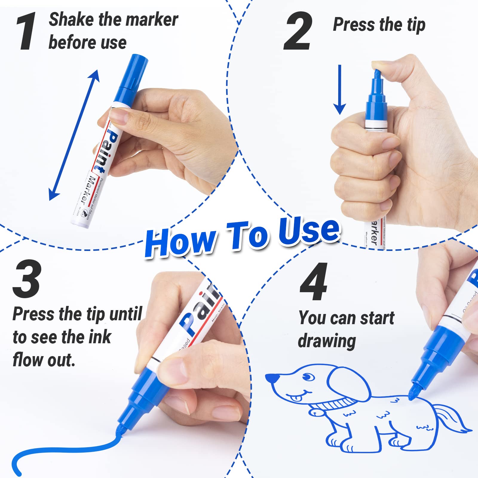 Permanent Marker Wasserfeste Stifte set: 12 Farben zum Steine Bemalen Permanent Marker Bunt Glasstift Lackstifte für Karton, Kunststoff, Holz, Metall,Keramik Tasse,Reifen