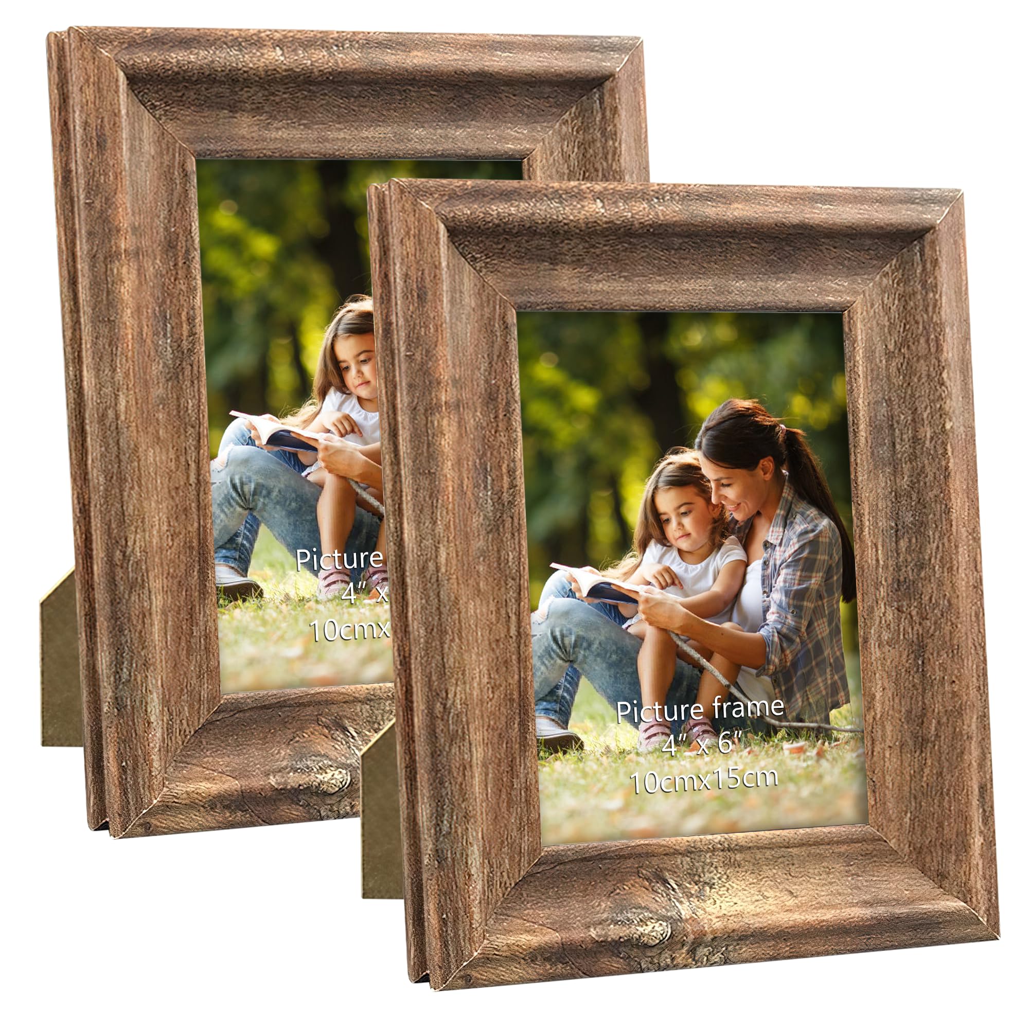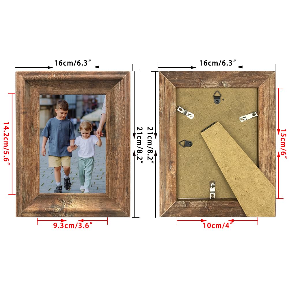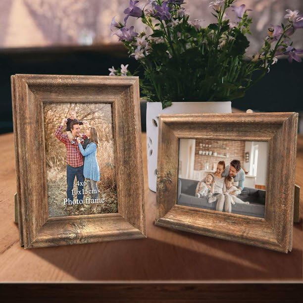 PETAFLOP Rustikaler Bilderrahmen 10x15 CM 2er Set, Wand- und Tischbilderrahmen, Braun