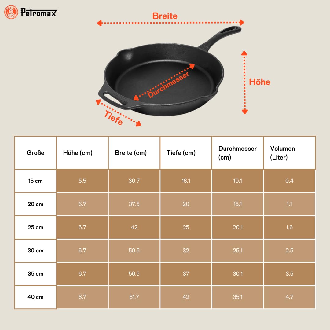 Petromax Feuerpfanne mit Stiel - Pfanne aus Gusseisen für alle Grill- und Herdarten, Gasflamme, Backofen oder Kochen im Freien - Anbraten, Schmoren und Rösten mit Antihafteffekt - 40 cm Durchmesser