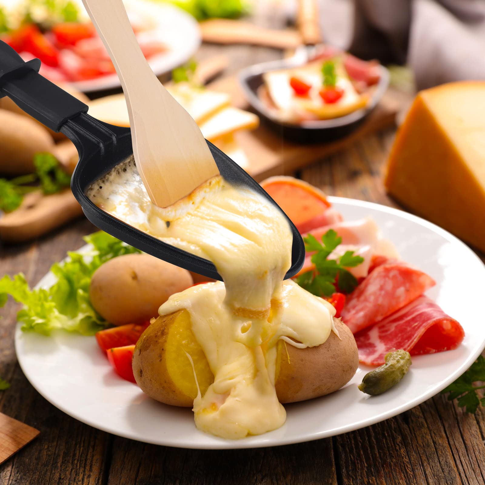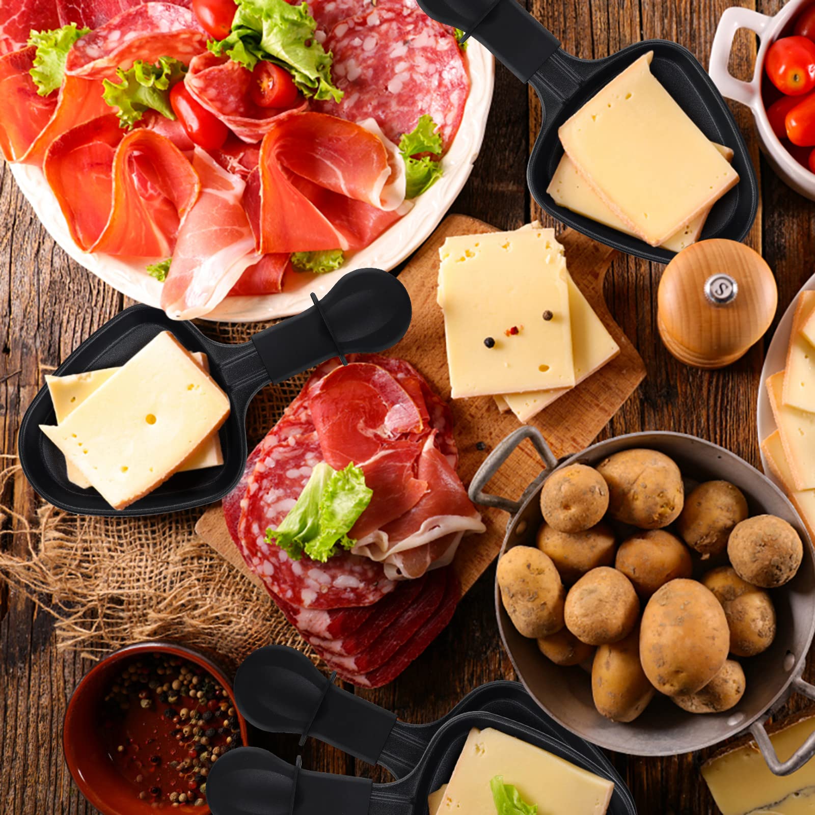 - Hergestellt aus hochwertigem Material, langlebig und sicher. - Hochwertige Antihaftbeschichtung zur einfachen Reinigung - Sicherer Verbrennungsschutz, leicht zu halten und verhindert Verbrennungen an den Händen. - Perfektes Backwerkzeug, ein guter Begleiter für den Elektrogrill - Sehr gut geeignet zum Schmelzen von Käse, Spiegeleiern usw. Produkteigenschaften: Material: Eisen. Farbe: Schwarz. Masse: 18 x 9 x 1,5 cm. Im Lieferumfang enthalten: 4 antihaftbeschichtete Raclette-Pfannen 4 x Schaufeln aus Holz.