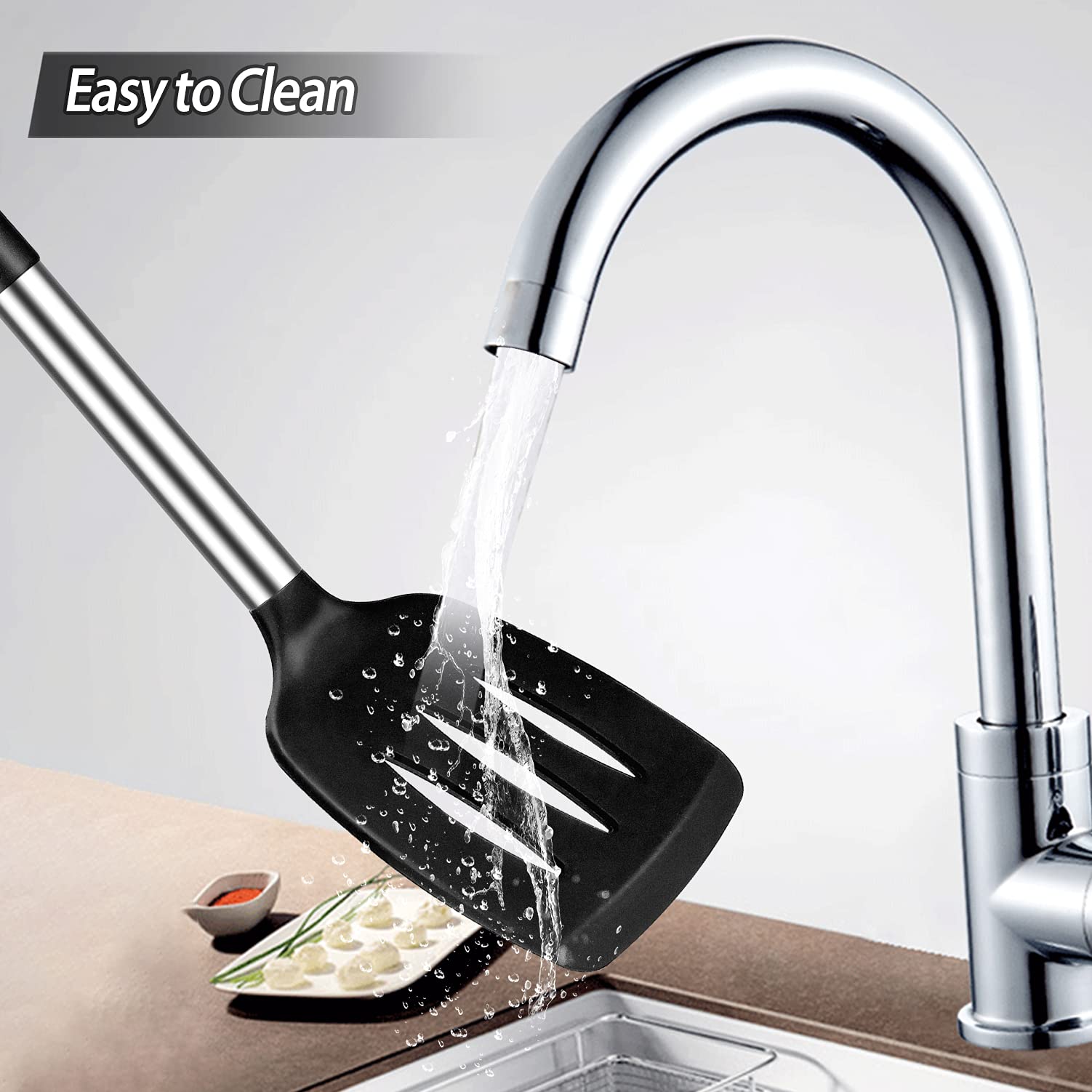 Mindestanzahl für die Bestellung von "Pfannenwender Silikon, Hitzebeständig Silikon Geschlitzt Spatel Küchenhelfer BPA Frei,Spülmaschinengeeignet Küchenhelfer Kochgeschirr Edelstahl Turner Antihaft Spachtel zum Kochen, Schwarz" ist 1.