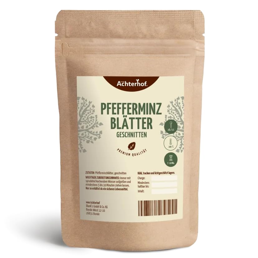 Pfefferminzblätter 500g I Pfefferminzblätter getrocknet und geschnitten I ideal für Pfefferminz-Tee I naturrein I Kräutertee lose I aus deutschem Anbau I vom Achterhof