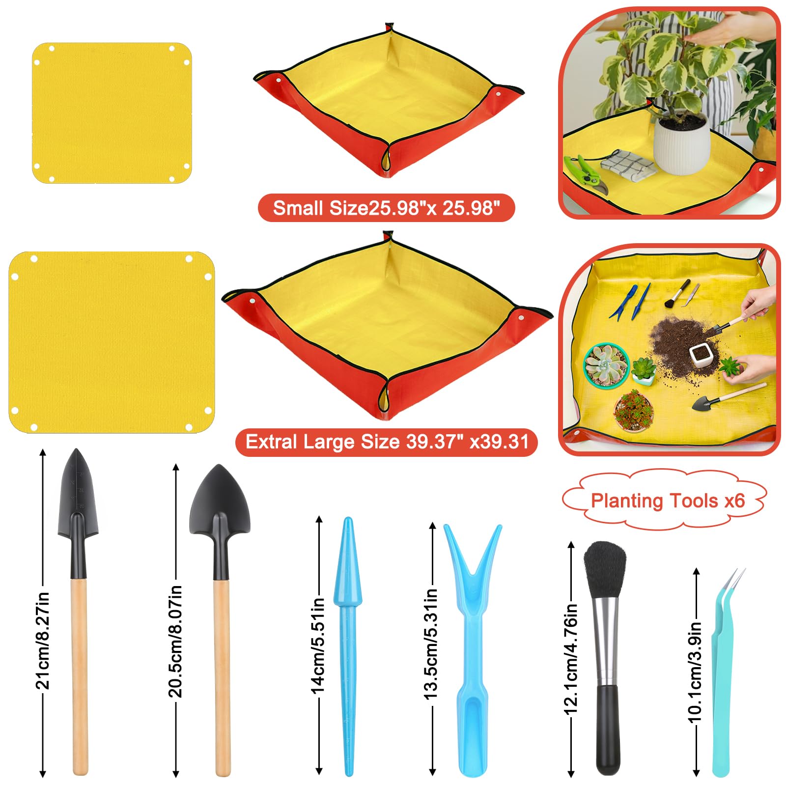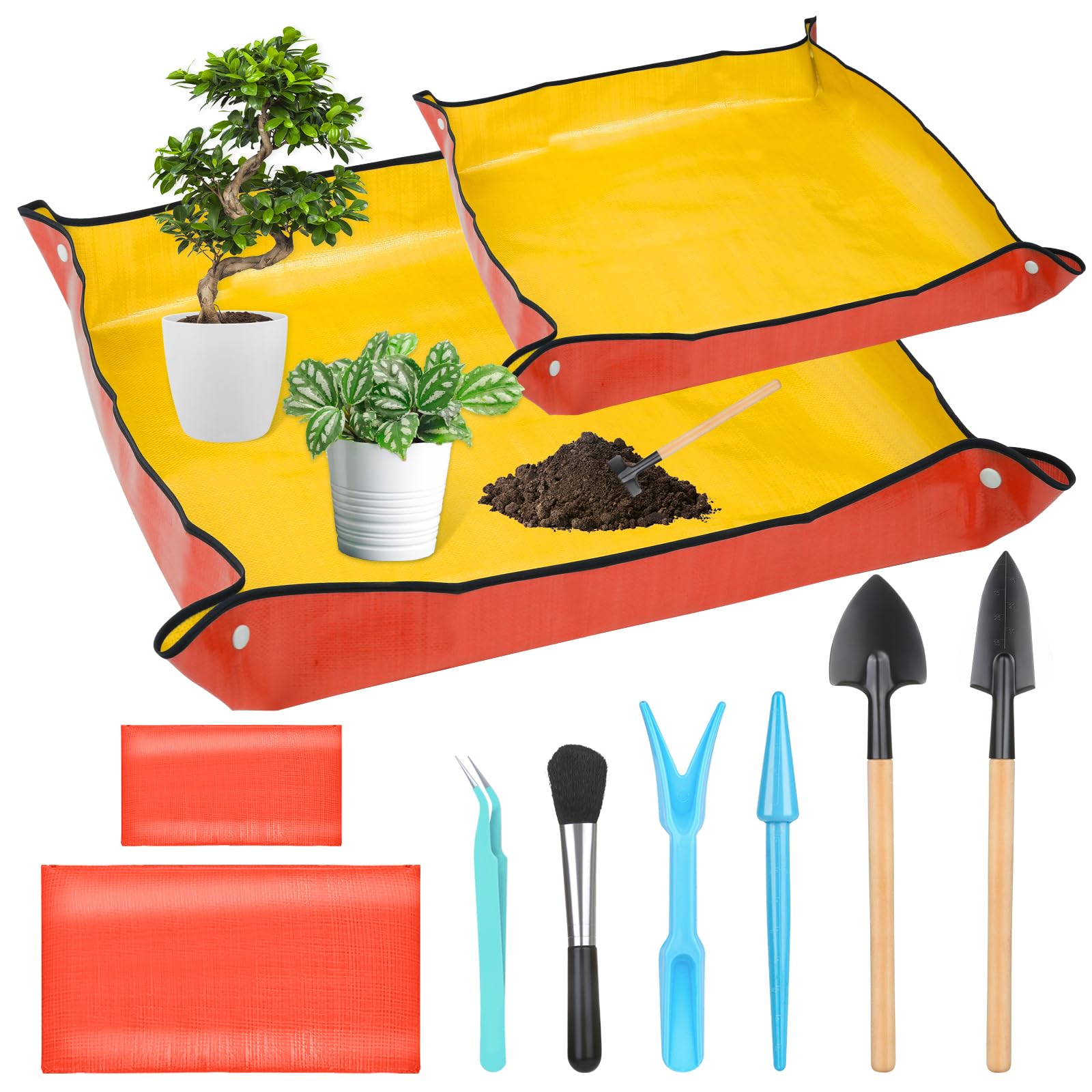 2 Stück Umtopfmatte zum Umpflanzen von Pflanzen, 99cm grosse Gartenmatte und 66cm orangefarbene Topfmatte für den Innenbereich, dickere Topfschale mit Pflanzenzubehör, faltbare wasserdichte Pflanzmatte