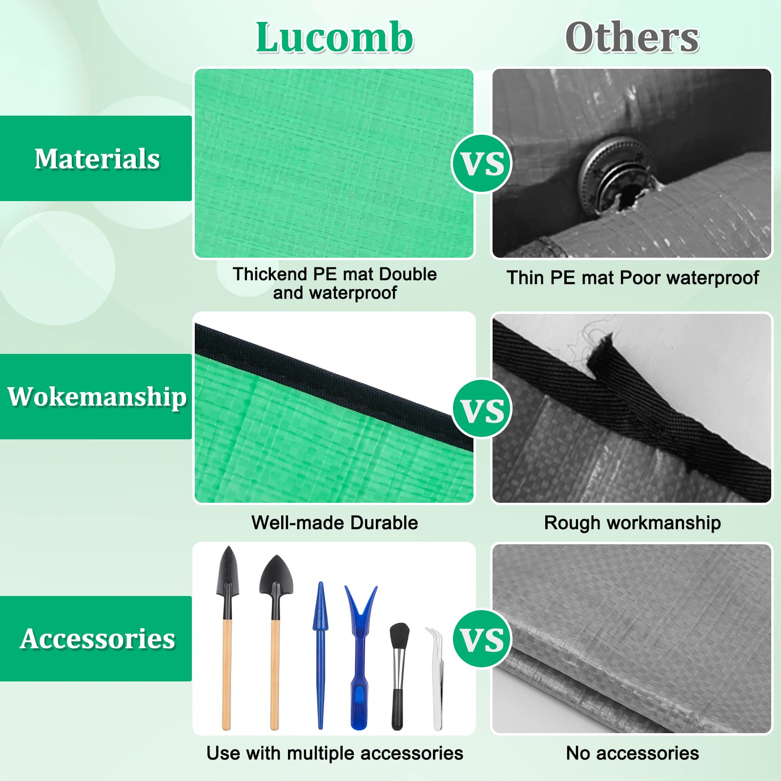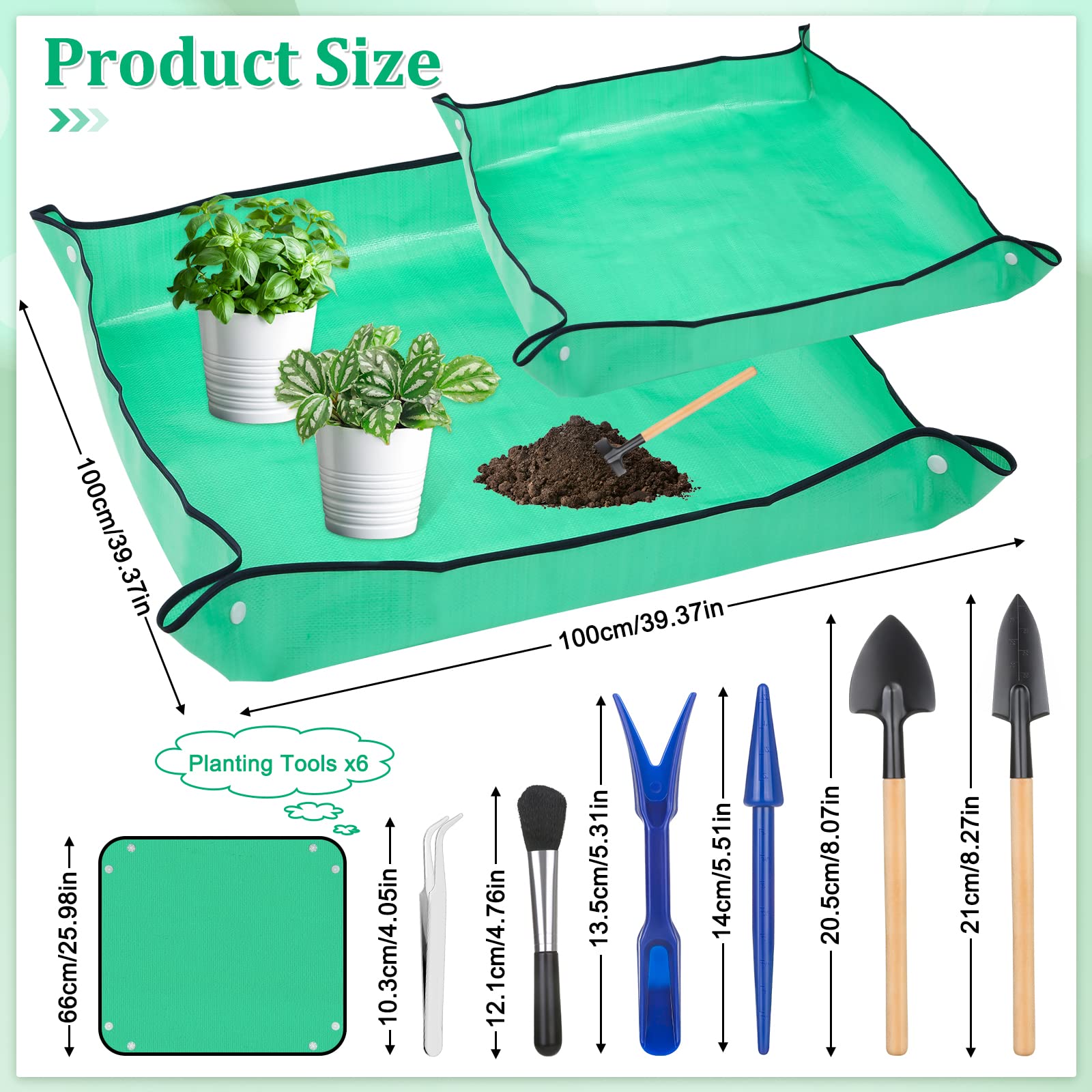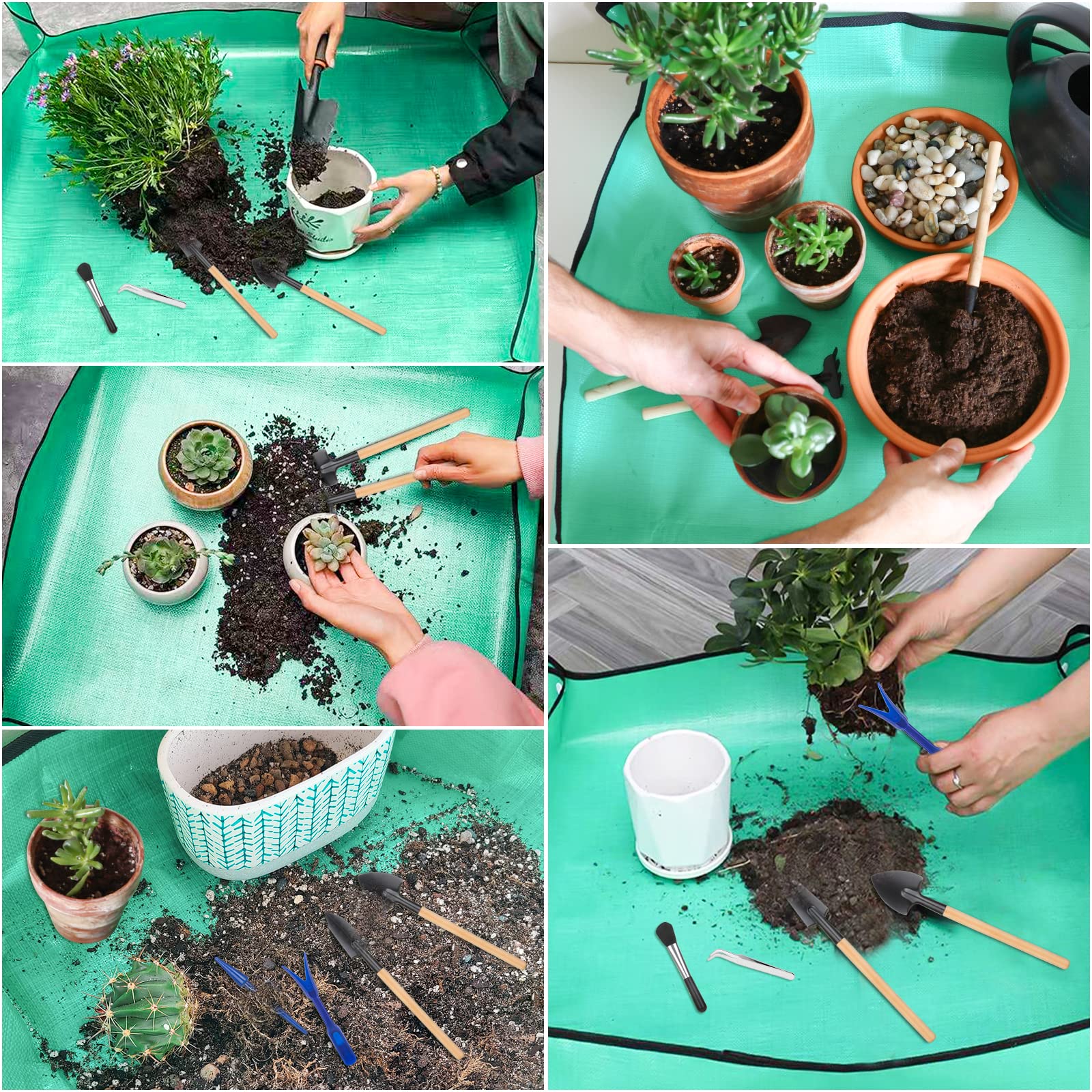 Pflanzen-Umtopfmatte für Garten, 2 Stück, wasserdichte Blumenmatte, faltbare Pflanzenmatte, Blumentablett mit 6 Mini-Gartenwerkzeug-Set für Pflanzenliebhaber, Gartenarbeit
