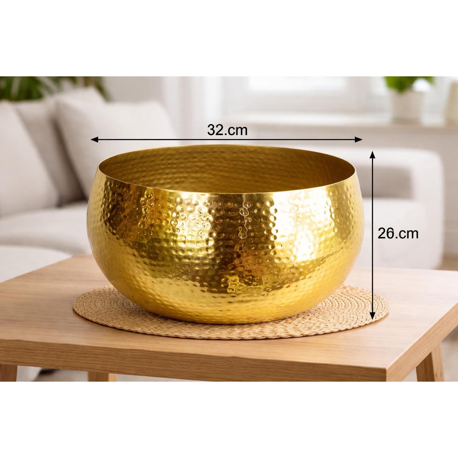 Pflanzkübel aus Metall, 32 x 20 cm, gehämmert, goldfarben
