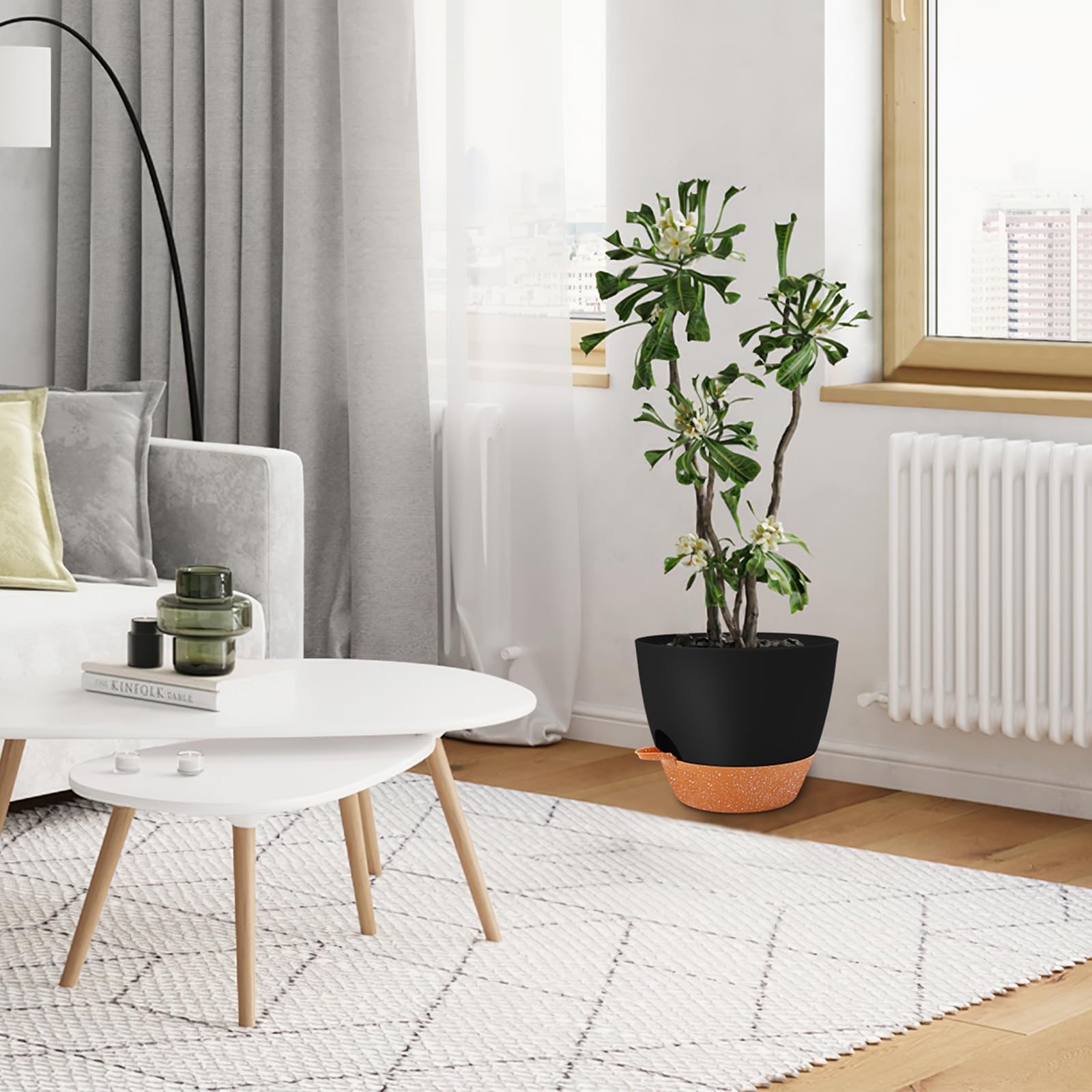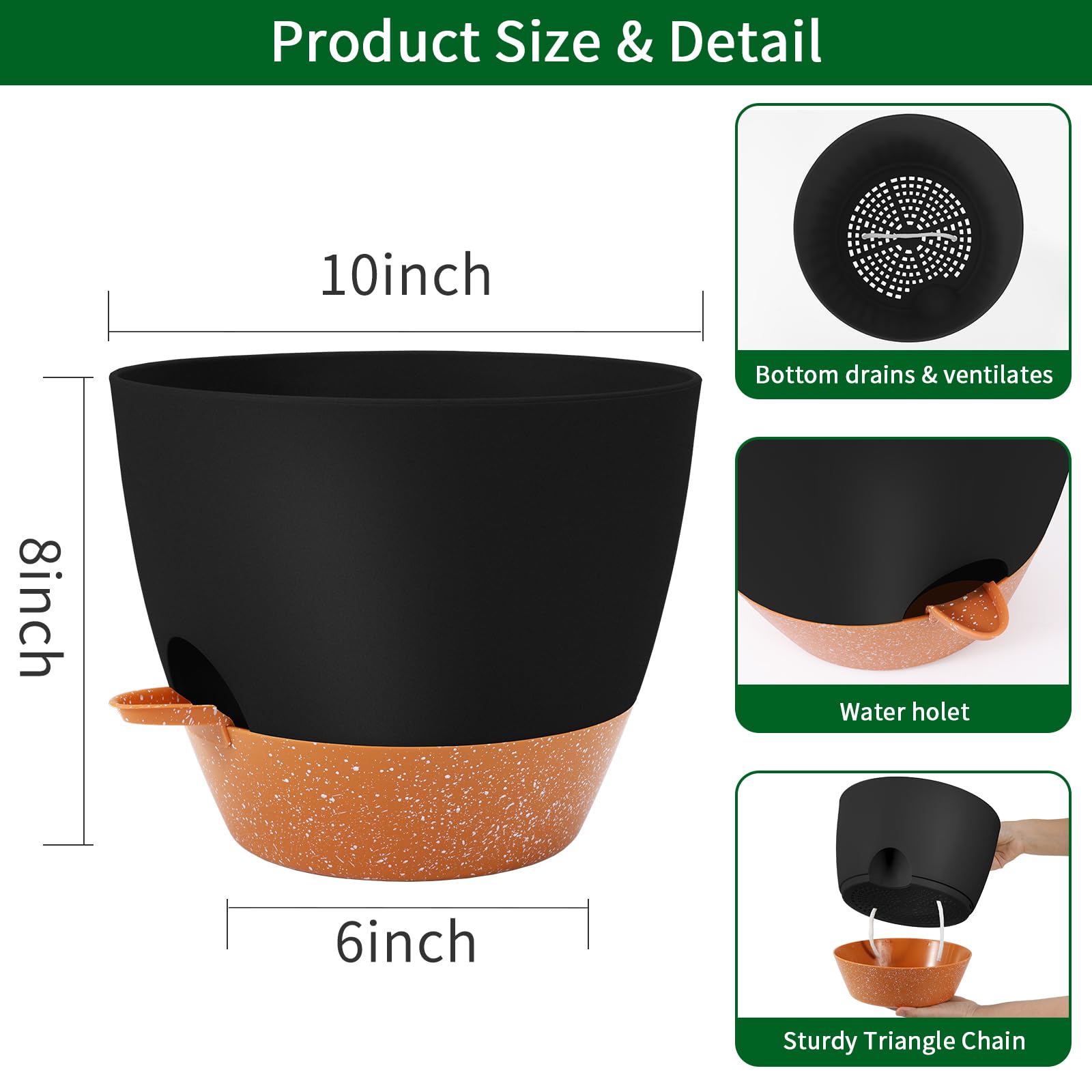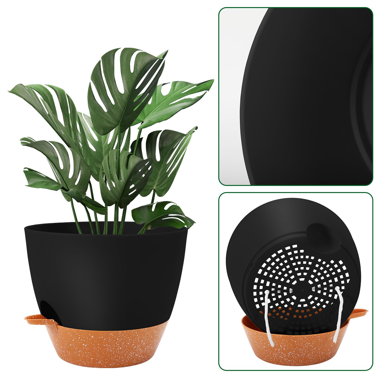 GARDIFE 25,4 cm grosse Blumentöpfe, selbstbewässernde Töpfe, grosse Kunststoff-Pflanzgefässe mit tiefem Reservior und hohen Drainagelöchern für Innen- und Aussenbereich, Pflanzen und Blumen, schwarz