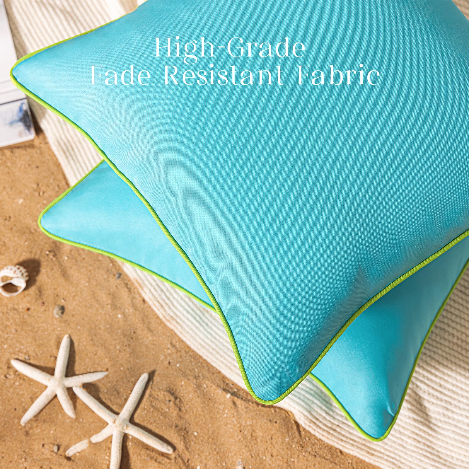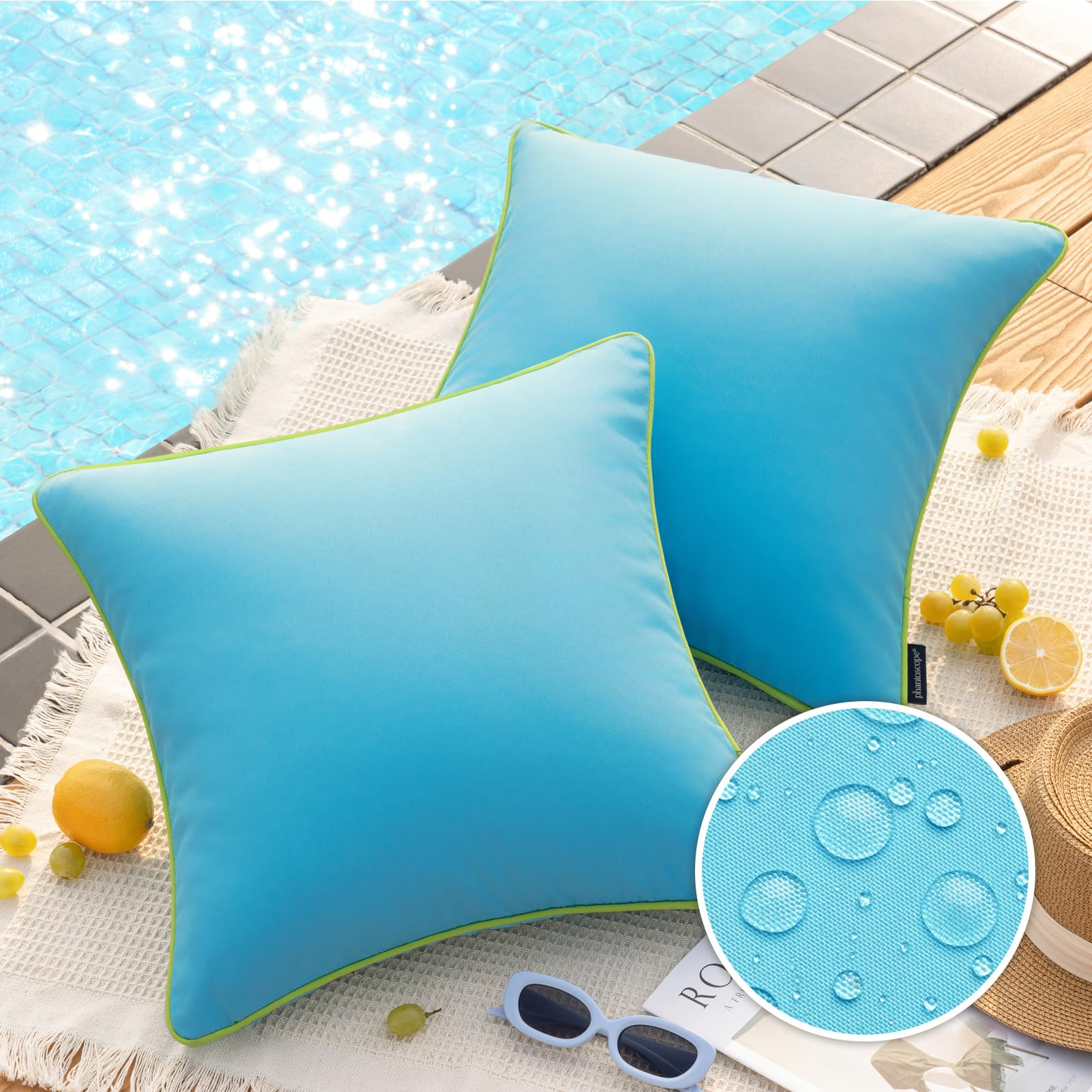 Phantoscope Wasserdichte Outdoor-Kissenbezüge mit Kontrastpaspel, dekorative quadratische Kissenhüllen für Terrasse, Sofa, Zelt, Sunbrella, Himmelblau, 50 x 50 cm, 2er-Pack