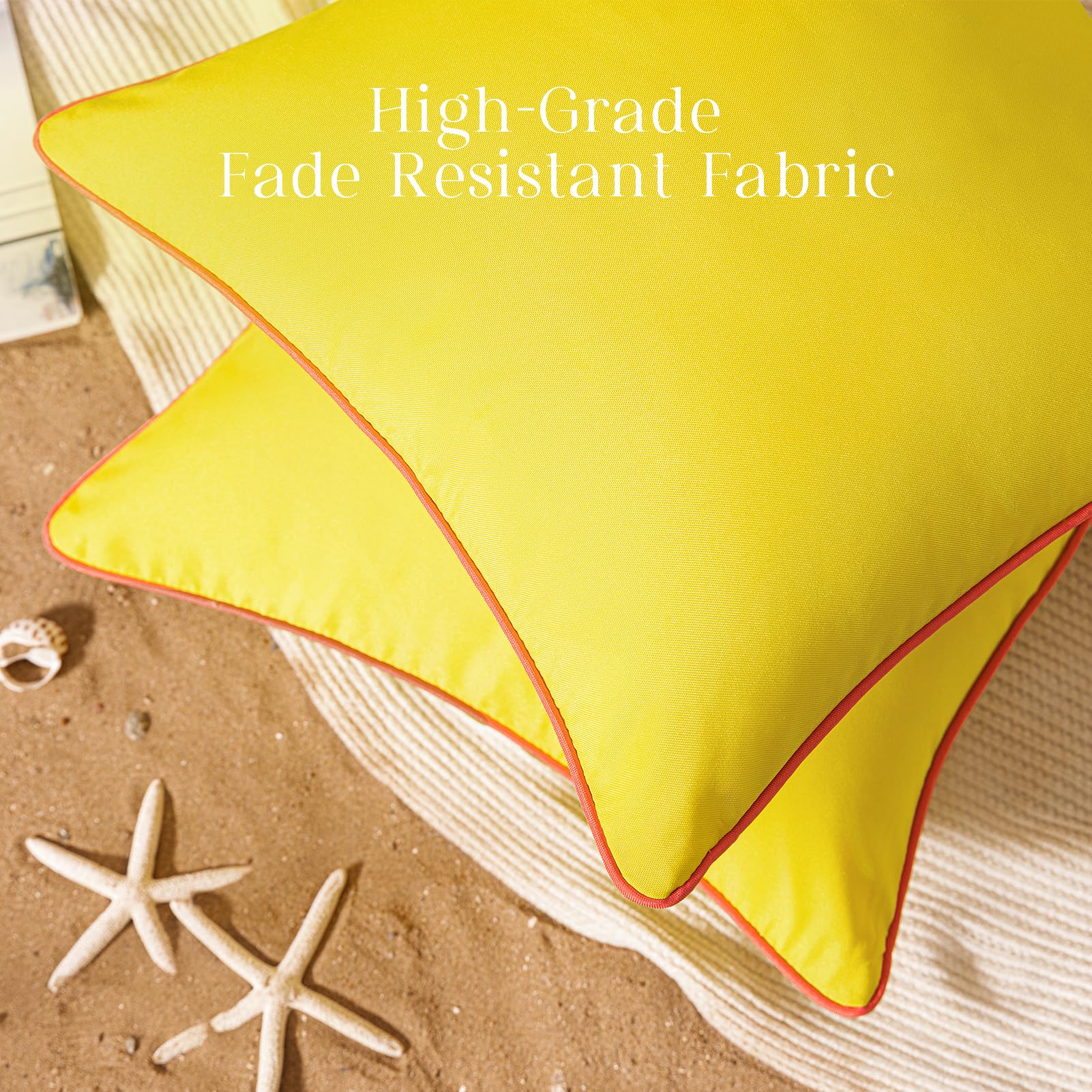 Phantoscope Wasserdichte Outdoor-Kissenbezüge mit Kontrastpaspel, dekorative quadratische Kissenhüllen für Terrasse, Sofa, Zelt, Sunbrella, Sonnengelb, 30 x 50 cm, 2er-Pack