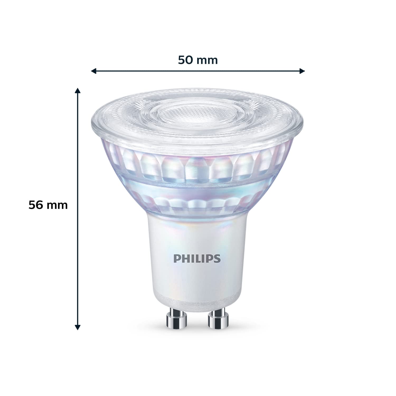 Philips LED – Ein hochwertiges & langlebiges Licht für die richtige BeleuchtungInnovativ, langlebig, energiesparend – die Philips LED Classic GU10 Spots Warm Glow sind perfekt geeignet, um Ihr Zuhause zu beleuchten. Das dimmbare, warmweisse LED Licht mit 2200 - 2700 Kelvin Farbtemperatur schafft eine gemütliche Atmosphäre im Raum, während der 36 Grad Abstrahlwinkel sowohl für eine Allgemein- als auch Akzentbeleuchtung geeignet ist. Dabei sorgt das innovative EyeComfort-Siegel von Philips für ein Licht, das schonend für die Augen ist.Im Vergleich zu herkömmlichen Leuchtmitteln sind die LED Spots nicht nur besonders energiesparend, sondern überzeugen auch durch ihre langen Nutzlebensdauer von 15 Jahren.Die richtige Beleuchtung:Philips LED Classic GU10 Warm Glow LampenEyeComfortMaterial: GlasDimmbar: JaLicht: WarmweissFarbtemperatur: 2200 - 2700 KLichtleistung: 230 lmWattleistung: 35 WBauform: PAR16Masse (B x H): 5 x 5,4 cmLieferumfang: 2 x GU10 LED Lampen