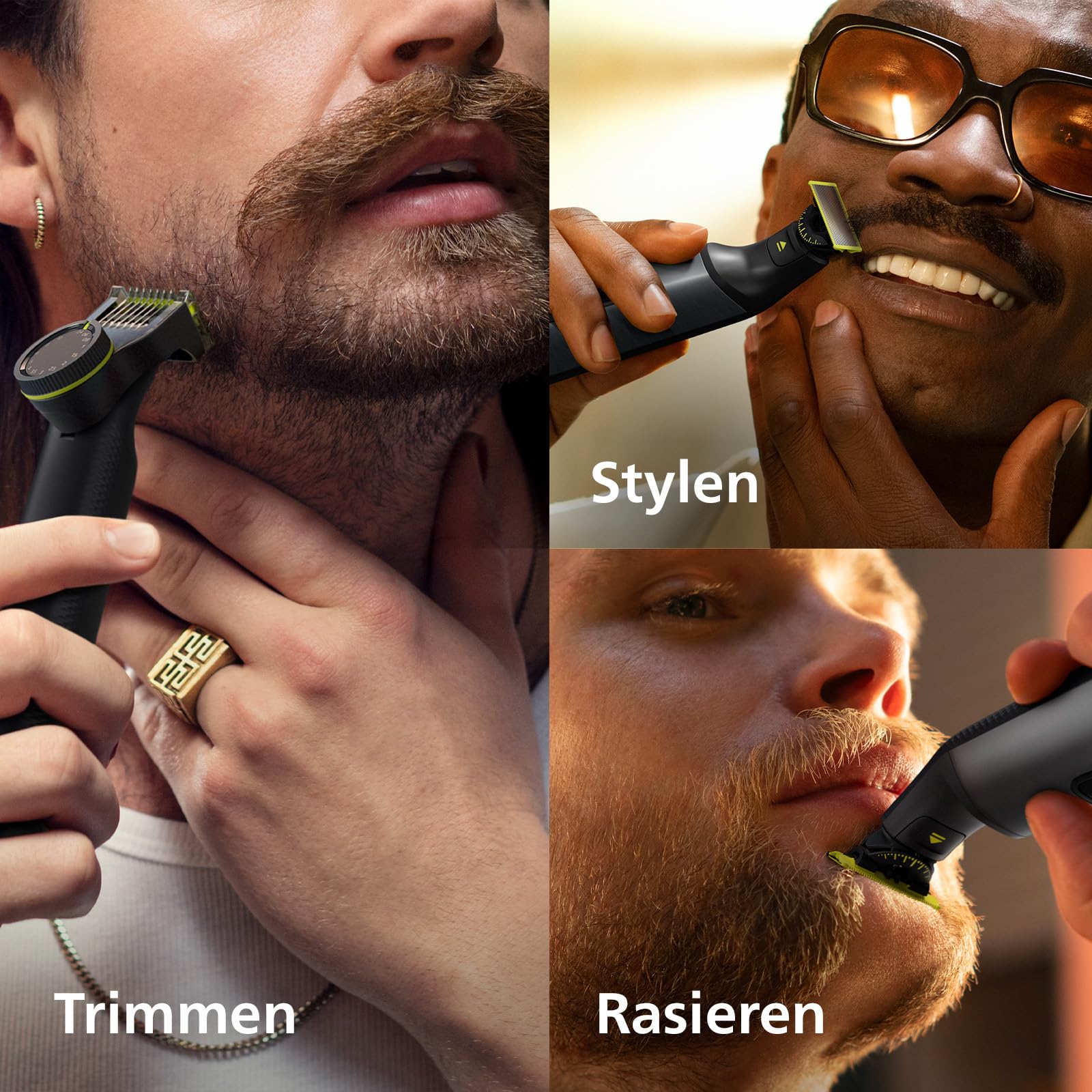 Philips OneBlade Pro 360 Face & Body – Elektrischer Bartschneider, Rasierer und Bodygroomer, 2x 360-Klingen, 1x Original-Klinge, 1x Kamm mit 14 Längen, 2x Körperaufsätze & Reiseetui, QP6651/35