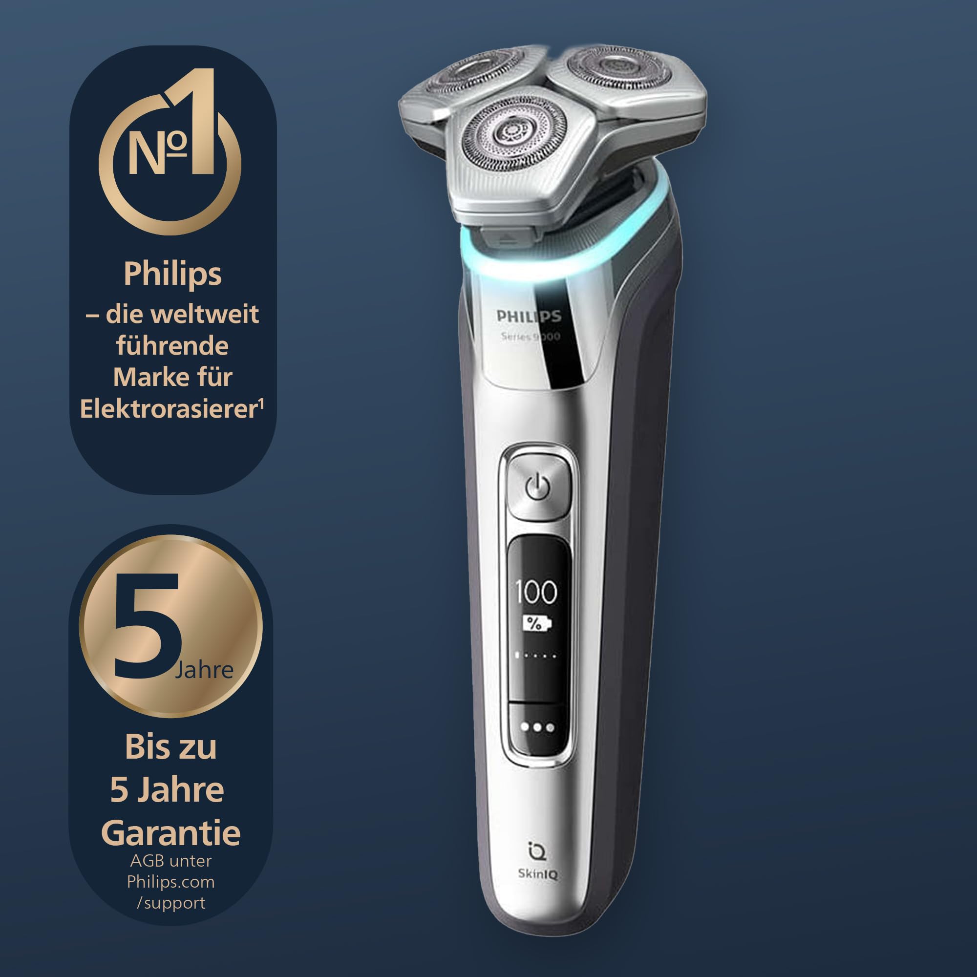 Philips Shaver S9000 – Elektrischer Nass-& Trockenrasierer für Männer, Dunkelchrom, Lift & Cut System, SkinIQ Technologie, Barttrimmer, Reinigungsstation, Ladestation & Reiseetui (Modell S9974/55)