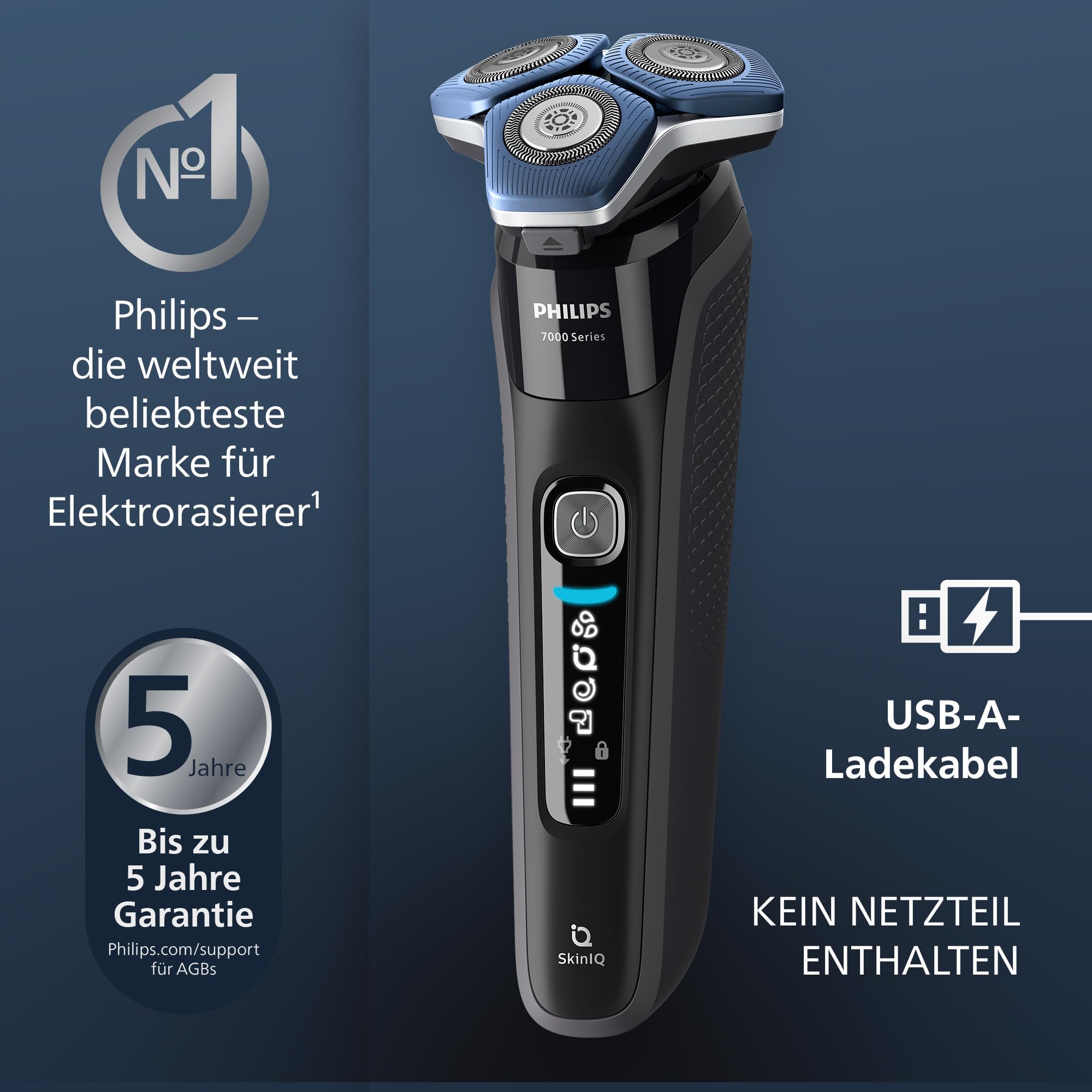 PHILIPS Shaver Series 7000 – Elektrischer Nass- und Trockenrasierer für Herren mit ausklappbarem Trimmer, Reinigungsstation, Ladestation & Reiseetui (Modell S7886/55)