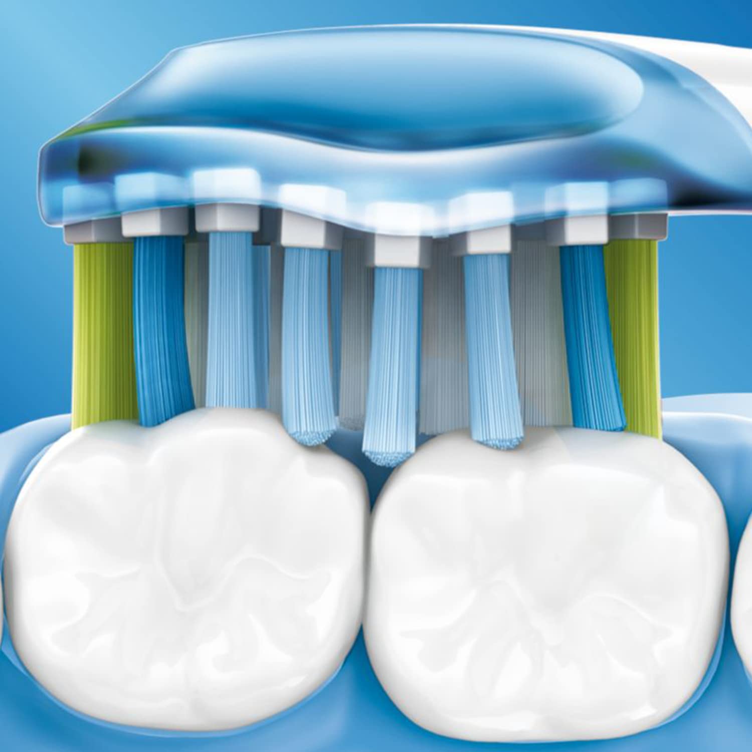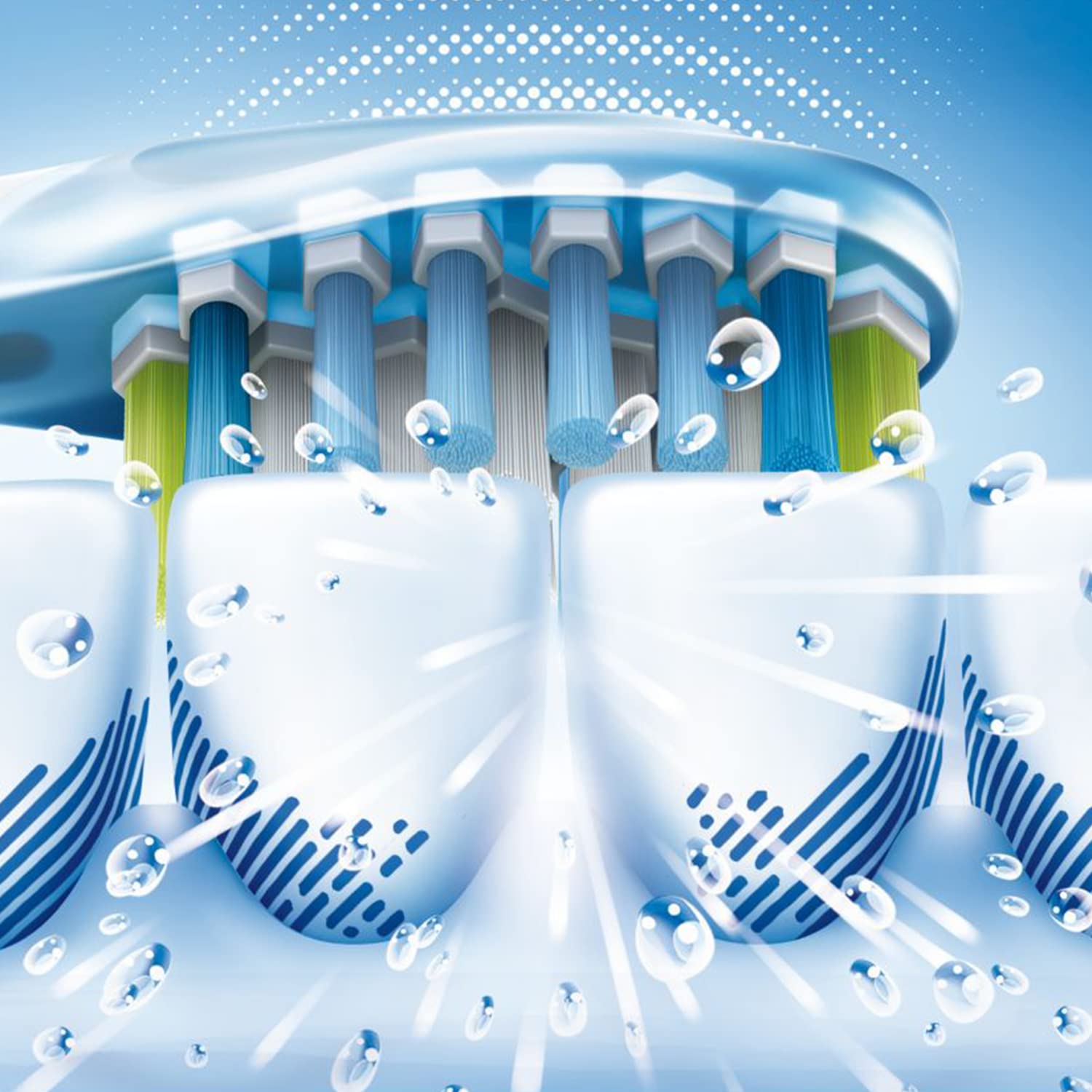 Die Reinigung von schwer erreichbaren Stellen wird Ihnen endlich erleichtert. Unser AdaptiveClean Bürstenkopf ermöglicht 4 Mal mehr Oberflächenkontakt und federt mühelos jeden überschüssigen ausgeübten Druck ab. Egal wie Sie putzen, Sie erhalten eine gründliche Reinigung, die sanft zu Ihrem Zahnfleisch ist. Der Philips Sonicare AdaptiveClean Bürstenkopf ist der einzige elektrische Zahnbürstenkopf, der sich der einzigartigen Form Ihrer Zähne und Ihres Zahnfleisches anpassen kann. Mit seinen weichen, flexiblen Seiten aus Gummi können sich die Borsten des Bürstenkopfes an die Form jeder Zahnoberfläche anpassen. Sie erhalten bis zu 4 Mal mehr Oberflächenkontakt und bis zu 10 Mal mehr Plaque-Entfernung entlang des Zahnfleischrand und in den Zahnzwischenräumen. Dieser Bürstenkopf lässt sich für einen sicheren Halt und eine einfache Wartung und Reinigung leicht auf Ihr Handstück aufstecken und abnehmen. Er ist mit allen Philips Sonicare Zahnbürstenhandstücke kompatibel, ausgenommen den Modellen PowerUp Battery und Essence. Die fortschrittliche Schalltechnologie von Philips Sonicare spült Wasser in die Zahnzwischenräume, während die Bürstenbewegungen Plaque löst und für eine aussergewöhnliche tägliche Reinigung entfernt. Die blauen Erinnerungsborsten färben sich im Laufe der Zeit weiss, damit Sie wissen, wann es an der Zeit ist, den Bürstenkopf auszutauschen. Für optimale Ergebnisse sollten Sie den Bürstenkopf alle drei Monate austauschen.