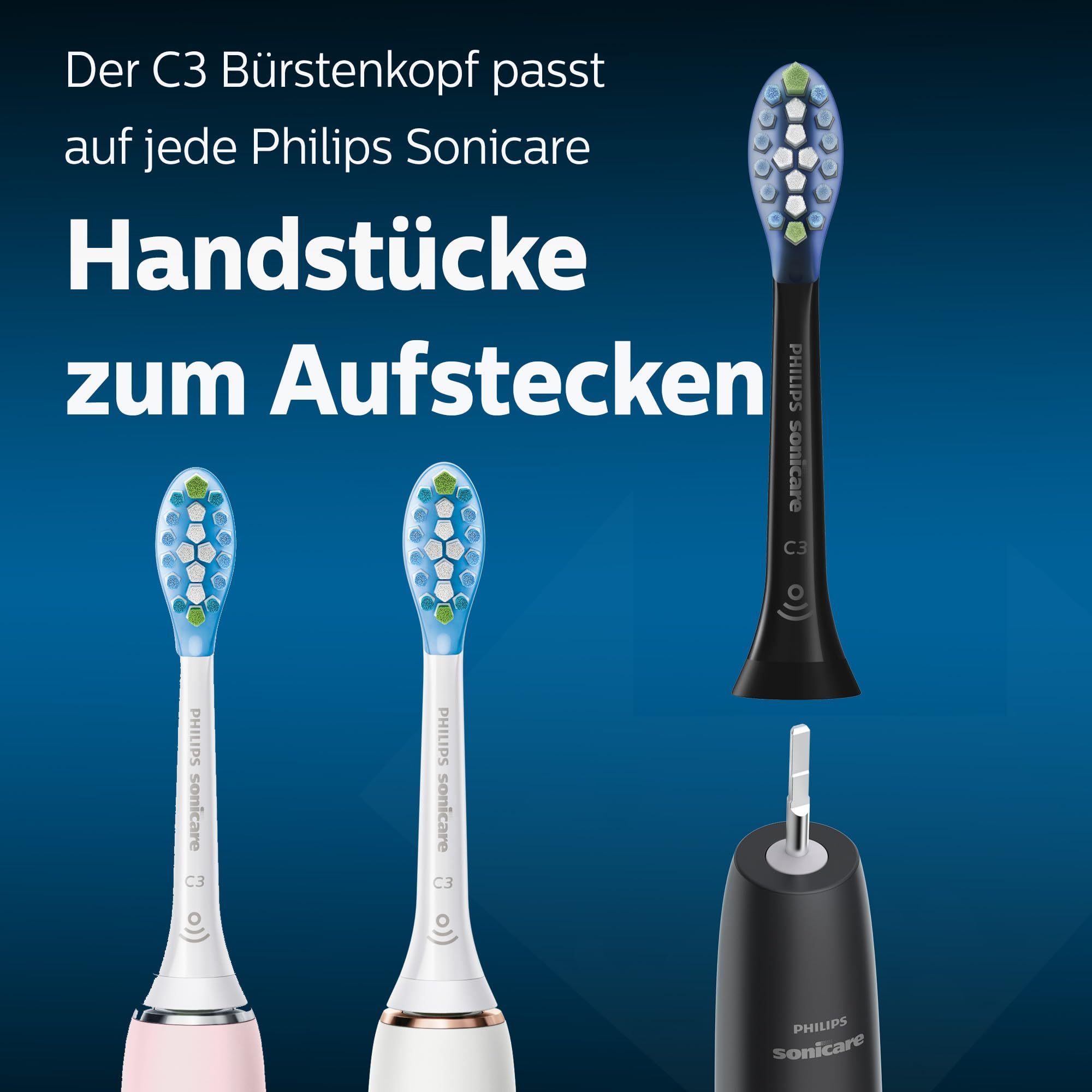 Mindestanzahl für die Bestellung von "Philips Sonicare Original C3 Premium Plaque Defence Standard Schallzahnbürstenköpfe - 4er-Pack in Schwarz (Modell HX9044/33)" ist 1.