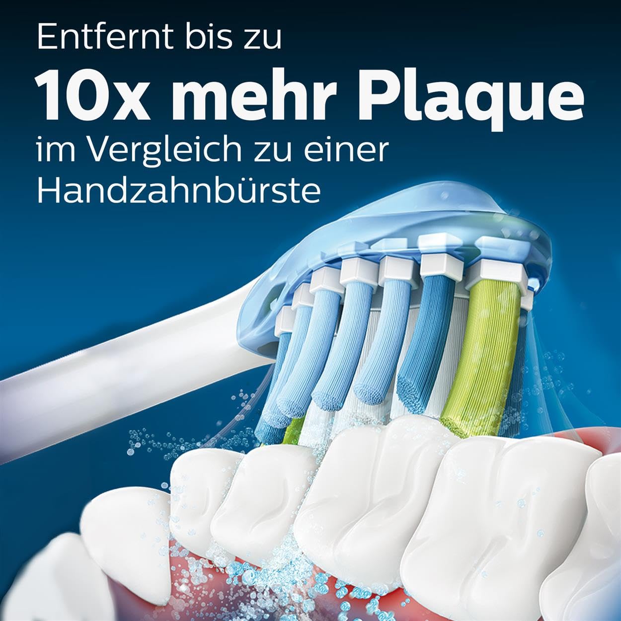 • Philips Sonicare-Schalltechnologie: Spült Wasser in die Zahnzwischenräume und löst & entfernt Plaque