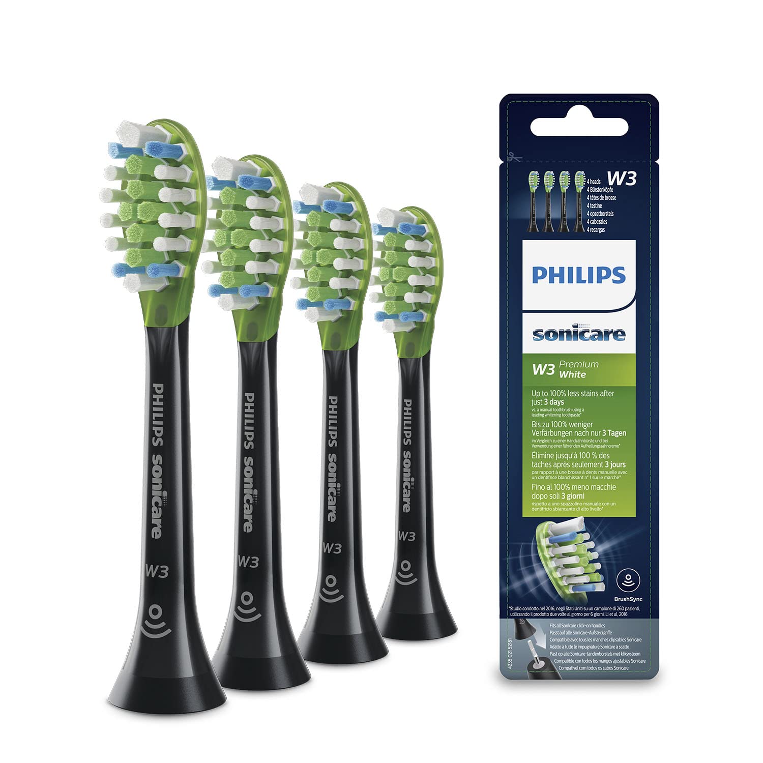 Speisen und Getränke können Ihrem strahlendem Lächeln einen Dämpfer verpassen. Aber keine Sorge, denn unser W3 Premium White Bürstenkopf bringt das Weiss Ihres Lächelns wieder zurück. Seine polierenden Borsten entfernen bis zu 100 % oberflächliche Verfärbungen, um Ihre Zähne in nur 3 Tagen sichtbar aufzuhellen, während Sie noch dazu eine aussergewöhnlich gründliche Reinigung erhalten. Mit der Philips Sonicare Premium White erhalten Sie nicht nur eine aussergewöhnliche Reinigung, sondern auch eine tägliche Aufhellung. Ihr flexibles Design hilft Ihnen, bis zu 10 Mal mehr Plaque zu entfernen, während sich die Borsten Ihrem Zahnfleisch und Ihren Zähnen anpassen. So haben Sie bis zu 4 Mal mehr Oberflächenkontakt als mit einem herkömmlichen Bürstenkopf und können selbst schwer erreichbare Stellen gründlich reinigen. Mit unserer adaptiven Reinigungstechnologie, die sanft entlang des Zahnfleischrandes gleitet und übermässigen Bürstendruck abfedert, erhalten Sie bei jedem Putzen eine individuelle Reinigung. Die fortschrittliche Schalltechnologie von Philips Sonicare spült Wasser in die Zahnzwischenräume, während die Bürstenbewegungen Plaque lösen und entfernen, damit Sie jeden Tag aufs Neue von einer aussergewöhnlichen Reinigung profitieren. Dank der BrushSync-Technologie wissen Sie immer, wann Sie Ihren Bürstenkopf austauschen müssen, denn sie informiert Sie, wenn es Zeit für einen Wechsel ist. Ihr Premium White Bürstenkopf ist mit jedem Philips Sonicare Handgerät kompatibel, ausgenommen PowerUp Battery und Essence. Einfach aufstecken und wieder abnehmen, um Ihnen den Austausch und die Reinigung zu erleichtern.