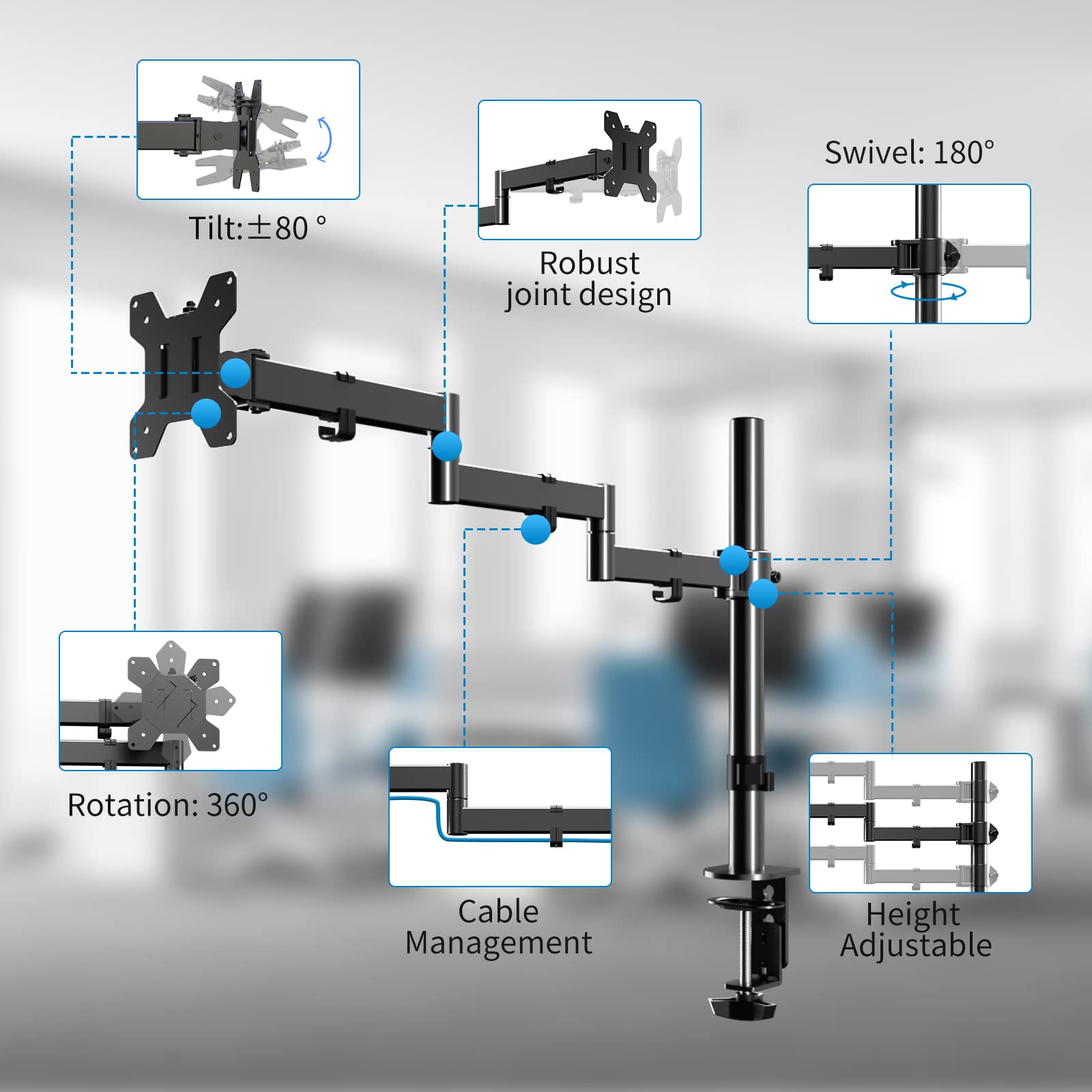 Monitorhalterung,Vesa Tischhalterung Bildschirmhalterung Höhenverstellbar für LED und LCD 17-32 Zoll Monitor Tischhalterung,710mm Extra Langer Arm Neigbar 180° Schwenkbar 360° bis 10 kg,VESA 75/100 mm