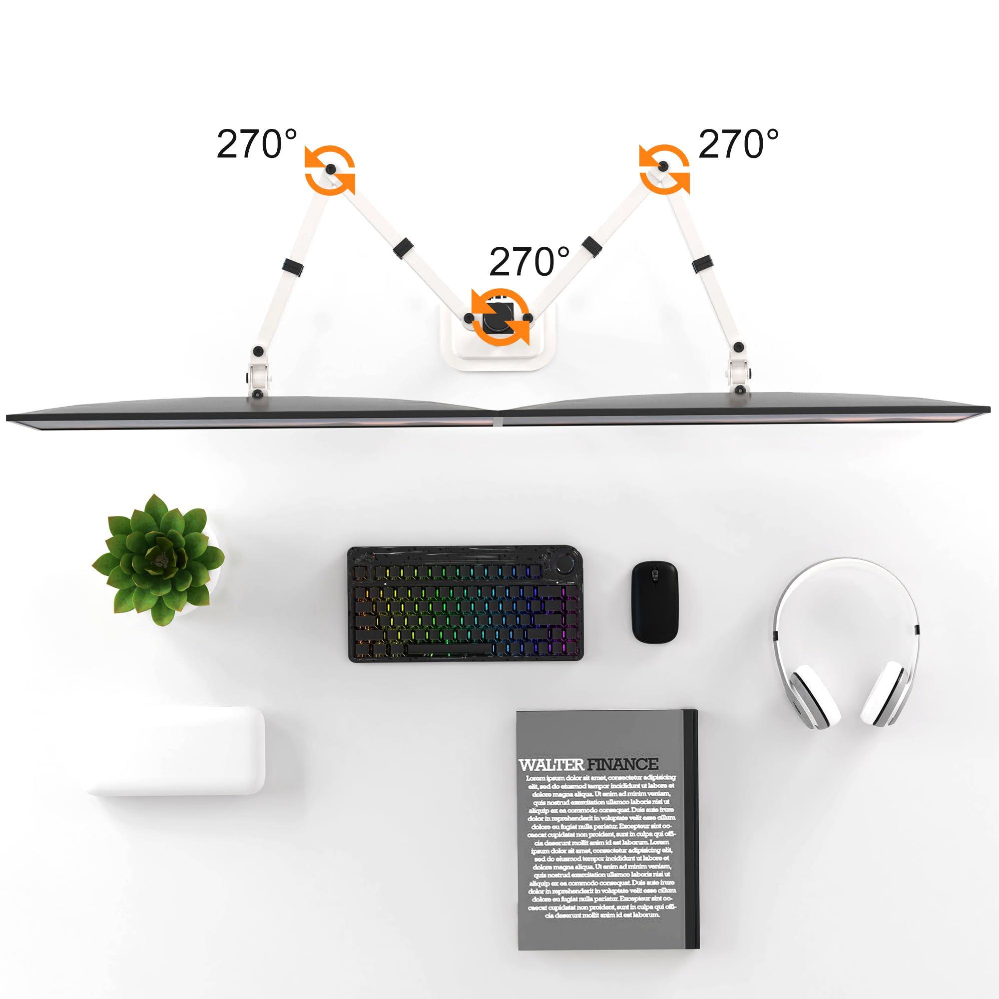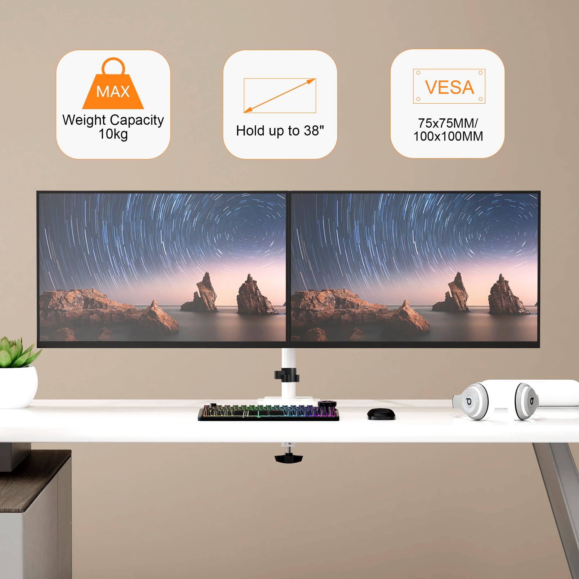 Pholiten Monitor Halterung für 13-38 Zoll LED Bildschirm bis zu 10 kg, Monitor Arm für 2 Monitore, Höhenverstellbar Schwenkbar Neigbar Monitorhalterung, max.VESA 100x100mm, Weiss, MD97442MW