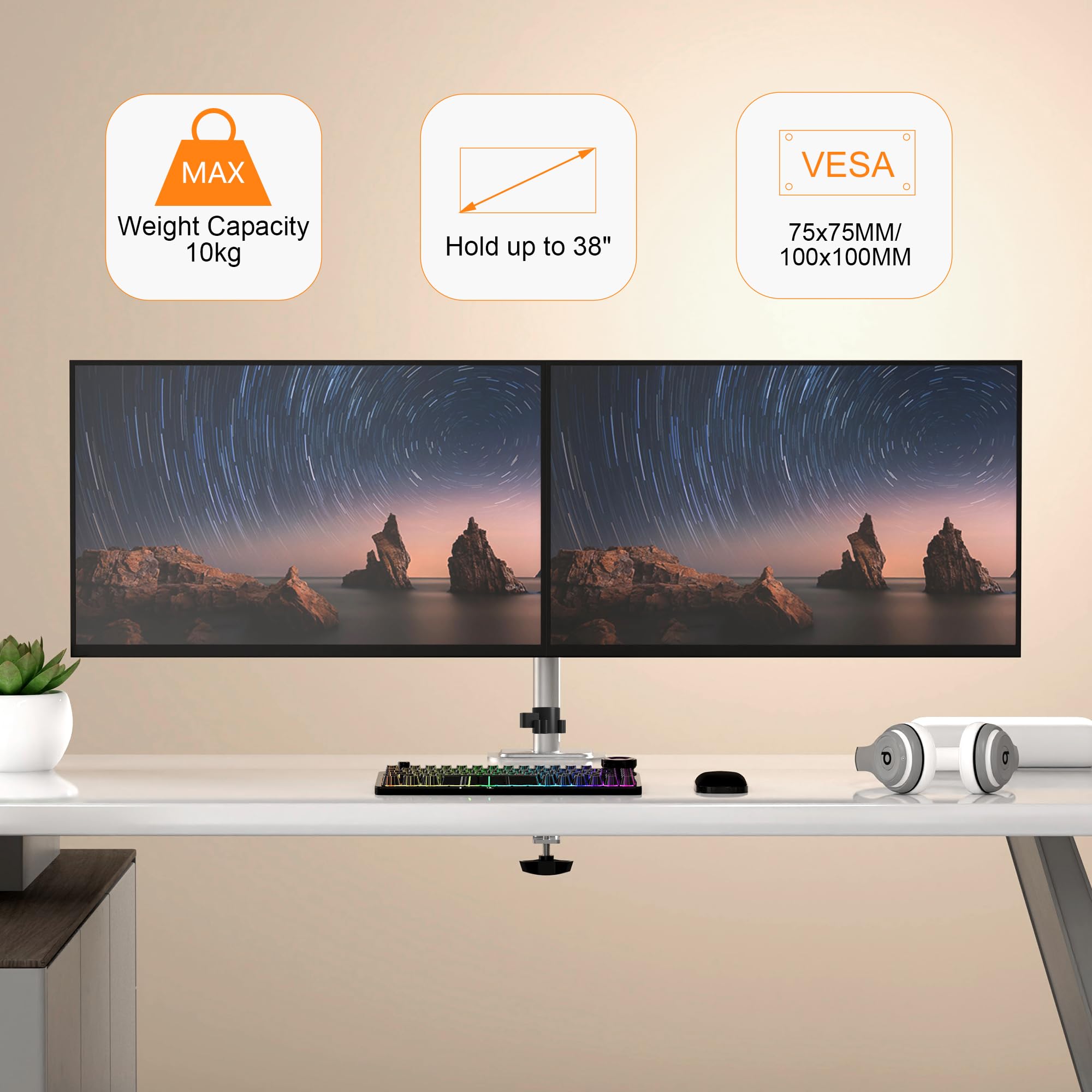 Pholiten Monitor Halterung für 13-38 Zoll LED Bildschirm bis zu 10 kg, Monitor Arm für 2 Monitore, Höhenverstellbar Schwenkbar Neigbar Monitorhalterung, max.VESA 100x100mm, Silber, MD97442MS