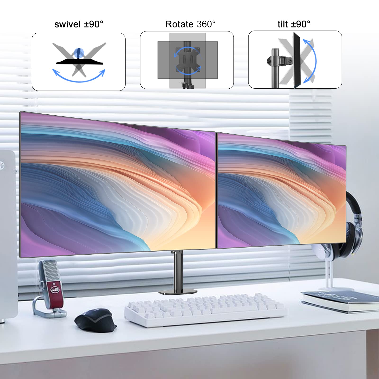 Pholiten Monitor Halterung für 13-27 Zoll LED LCD Bildschirm bis zu 10 kg, Monitor Arm für 2 Monitore, Höhenverstellbar Schwenkbar Neigbar Monitorhalterung für den Schreibtisch, max.VESA 100x100mm