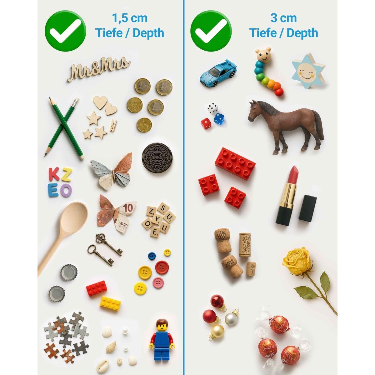 Dieser stabile Objekt-Rahmen aus MDF bringt Motive und Objekte hervorragend zur Geltung. Schlichtes Design, klare Linien und eine extra tiefe Leiste setzen Akzente ohne dabei vom Motiv abzulenken. Schwarz-weiss Aufnahmen entfalten hier ebenso Ihre Wirkung wie Farb-Fotografien oder Drucke. Die Objektrahmen sind hervorragend zum Basteln geeignet und lassen sich z.B. mit Muscheln, Eintrittskarten oder anderen Erinnerungsstücken befüllen. Die Objekt-Bilderrahmen sind in unterschiedlichen Grössen erhältlich und lassen sich ideal miteinander zu einer Bildergalerie oder Bilderwand kombinieren.