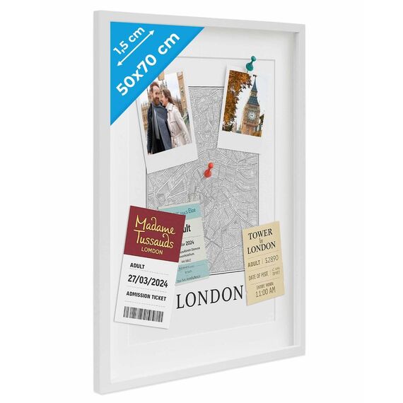 PHOTOLINI 3D Bilderrahmen zum Befüllen 50x70 Weiss gross, 1,5 cm tiefer Objektrahmen mit Glas, tiefer Bilderrahmen 50x70 Holz MDF mit Passepartout, Dicker 3D Rahmen befüllbar für Gegenstände Geschenk