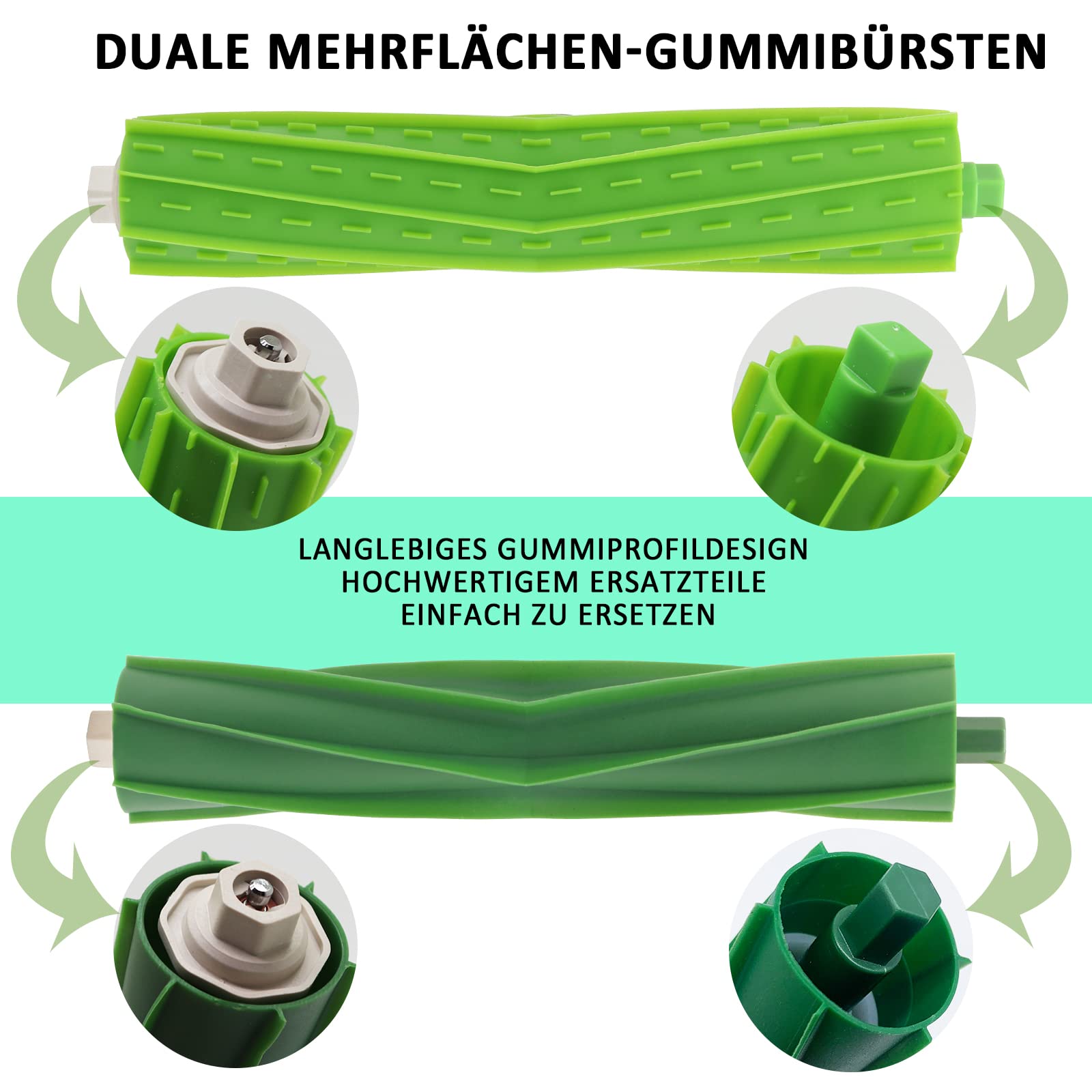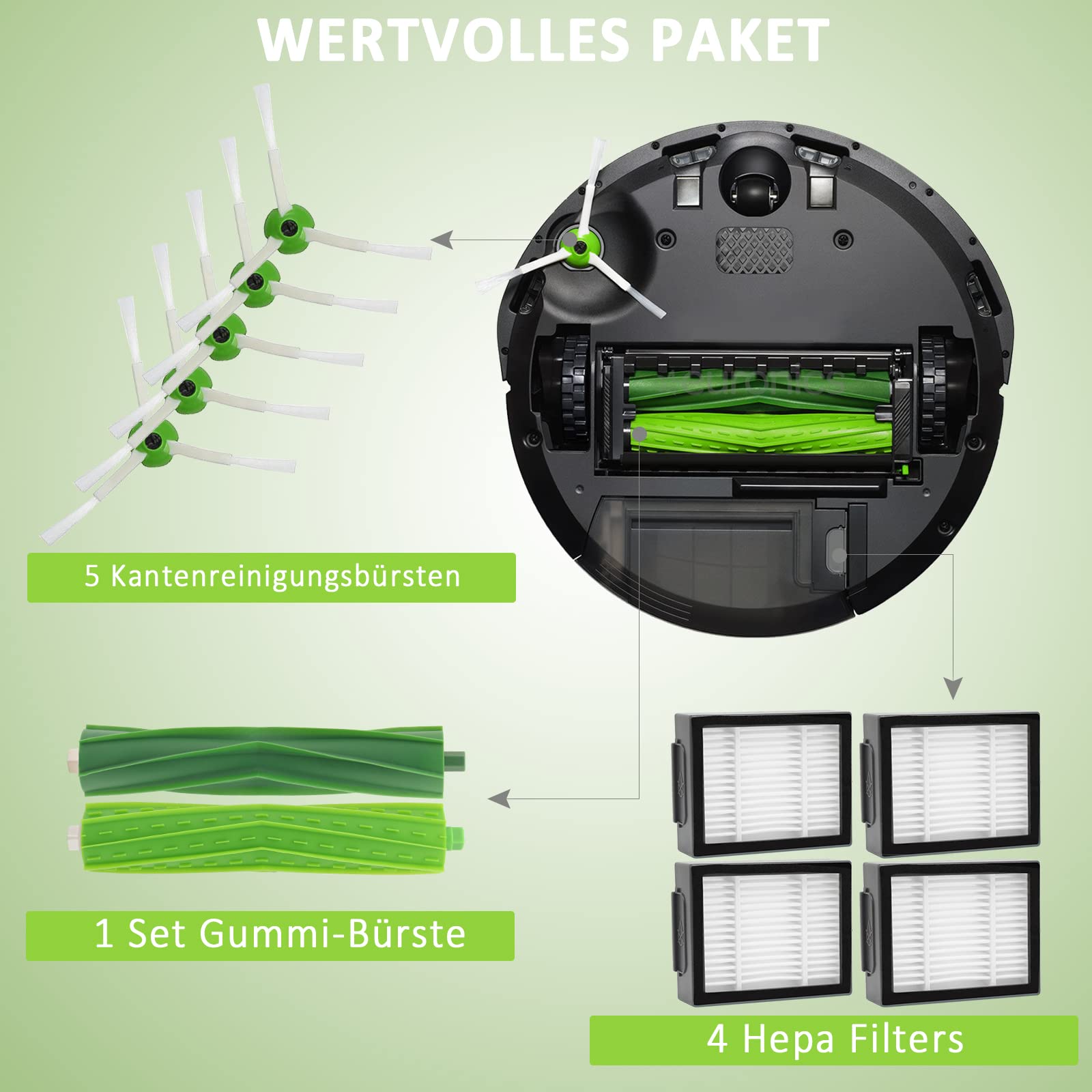 Kompatibilität – Das set ist kompatibel mit iRobot Roomba e/i/j Series i6(6550) i6+ i3(i3152) i3+(i3552) i4 i4+(4552) i7(i7156) i7+(i7556) i8 i8+(8550) j7 7+ (75). 50) Plus E5 (e5154) E6 (e6192) Staubsauger, inklusive Gummiwalzenbürsten für mehrere Oberflächen, hocheffizienten HEPA-Filtern (der Filter ist nicht für Roomba Combo J7+) und kantenkehrenden Seitenbürsten für die regelmässige Wartung Ihres i-Roboter-roboters der Roomba e/i/j-Serie. Hochwertige teile – Die zwei Gummibürstenabzieher für mehrere Oberflächen verfügen über ein langlebiges Gummiprofildesign, einer zum Entfernen von Schmutz und der andere zum Aufkehren von Schmutz. Die Seitenbürste reicht tief in Ecken und Kanten, um mehr Schmutz, Staub und Ablagerungen zu entfernen. Gleiche Qualität und funktioniert wie der Originalfilter für die iRobot Roomba e/i/j-Serie, kann 99,97 % Staub und Schmutz zurückhalten. Roomba i7-teile lassen sich rechtzeitig ersetzen und verlängern die Ihrer Geräte. Einfach auszutauschen – teile und Zubehör für iRobot Roomba der Serie E/i/J sind einfach zu installieren, einfach per Hand in klarem Wasser waschen und vollständig an der Luft trocknen lassen. Falls die Bürsten durch verbogen sind, können Sie sie wieder instand setzen, indem Sie sie einfach eine Weile in heisses Wasser einweichen. Randkehrbürsten und Filter können alle 2 – 3 Monate ausgetauscht werden. Gummibürsten für mehrere Oberflächen sollten alle 6 Monate ausgetauscht werden. Wertvolles Paket – Roomba-teile für iRobot Roomba i7 i7+ i3 i3+ i4 i4+ i6 i6+ i8 i8+ j7 j7+ Staubsaugerzubehör mit 1 Satz Gummibürsten, 4 HEPA-Filtern, 5 Seitenbürsten, 5 Schrauben und 1 Reinigungswerkzeug. Roomba i7-teile für iRobot sind Ihr Ausgangspunkt, wenn es darum geht, das Haus für Ihre Familie sauber zu halten.