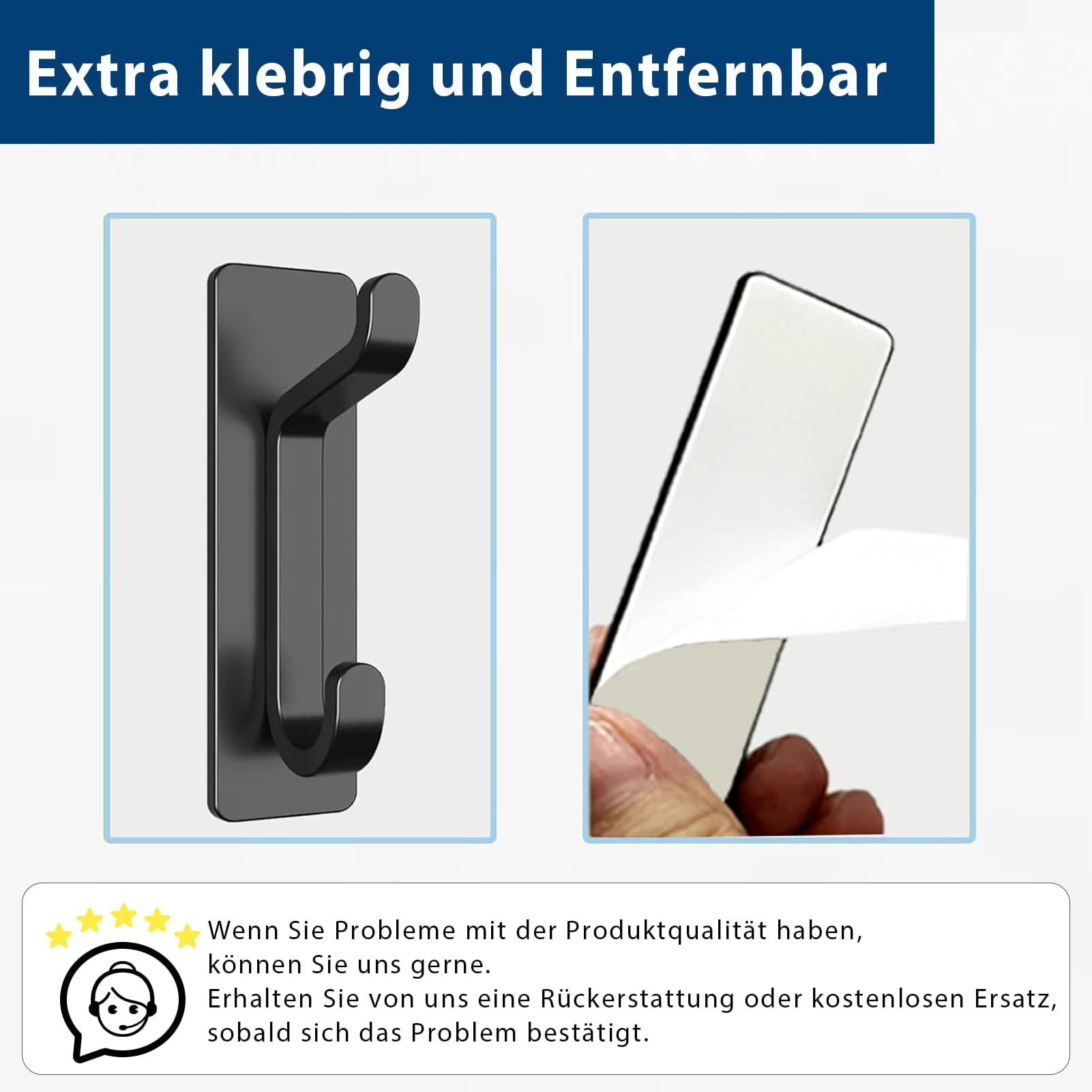 pickpiff Klebehaken Ultra Stark, Hält Bis Zu 6kg, Metall Türhaken Handtuchhaken Nichtrostend, Selbstklebende Haken Schwarz Matt, Duschhaken Ohne Bohren