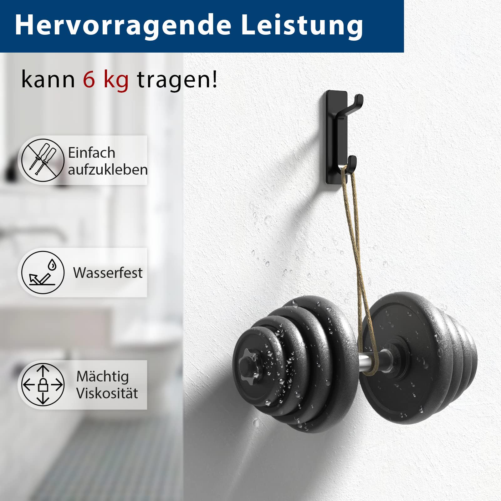 - Hält bis zu 6 KG - Mit super klebrigen doppelseitigen Streifen hält dieser Wandhaken gut und fällt nicht ab.