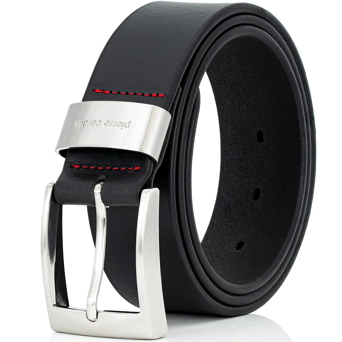 Pierre Cardin Vollbüffel 4mm Echt Leder-Gürtel Herren / Vollleder-Gürtel Herren, Jeansgürtel XXL, in 2 Farben, schwarz / braun - Lieferbar bis Bundweite 150 cm- nicht kürzbar- satinierte Dornschliesse mit Metallschlaufe- Gürtelbreite ca. 4,0 cm- offenkantig geschnittener Ledergürtel- rote Nähte bei der Schliesse- Pierre Cardin Logo auf der Metallschlaufe- Material: echtes Voll-Büffel-Leder- Inkl. Seidenpapier für Reise oder Aufbewahrung