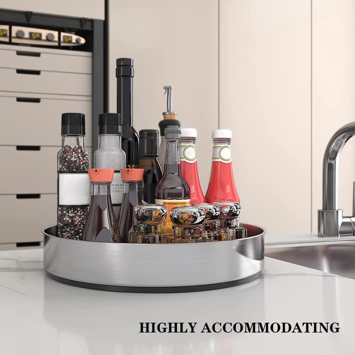 PIGPIGFLY Rotating Spice Rack for Kitchen, Kitchen Spice Rack, Rotating Spice Rack for Storing Spices and Jars in The Pantry, Stainless Steel Spice Organizer(31cm)