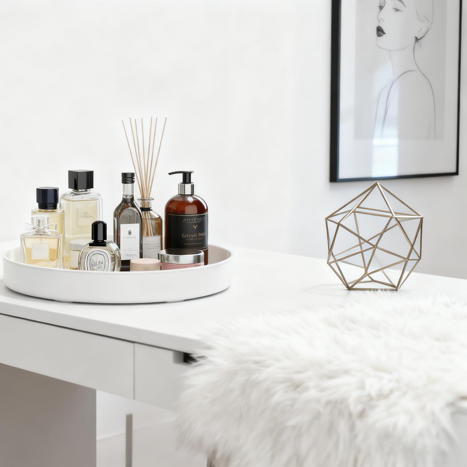 PIGPIGFLY Küchen Organizer,Drehteller Organizer Küche,360 Grad Rotierender Vorratsbehälter Für Lebensmittel,Gewürzhalter aus Rostfreiem Edelstahl,Lazy Susan(Weiss/25cm)
