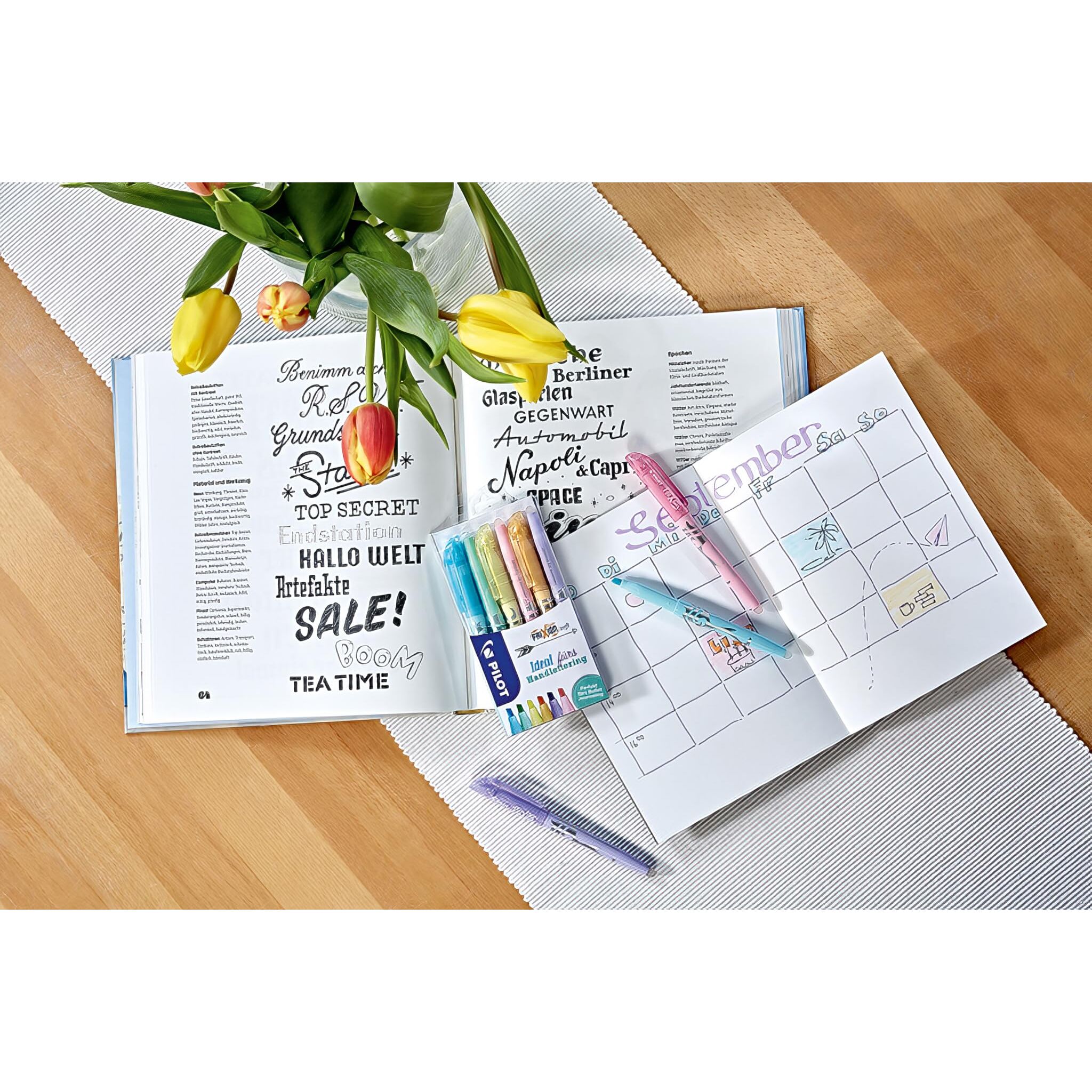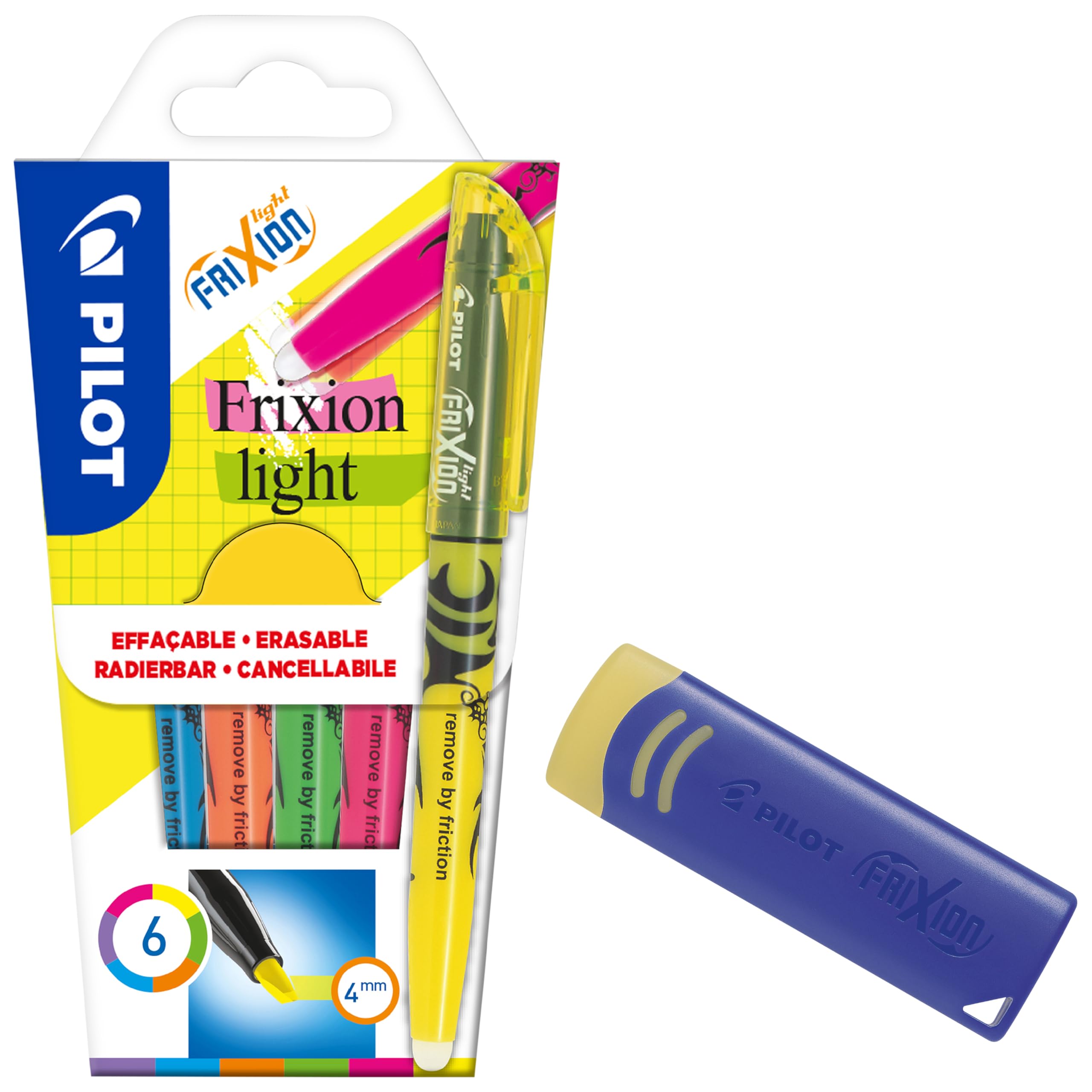 PILOT - 6er-Set FriXion Light - Radierbarer Textmarker - Keilspitze für feine oder breitere Linien (+ Radierer)