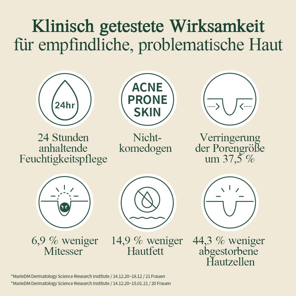 - Sofortige Beruhigung: Enthält Extrakte aus Centella Asiatica, Teebaum und Heckenkirsche, die irritierte und empfindliche Haut unmittelbar besänftigen.