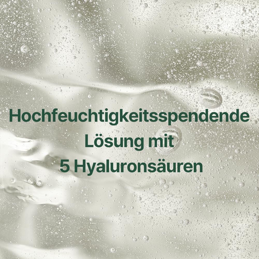 - 5-fache Hyaluronsäure: Verschiedene Molekülgrössen der Hyaluronsäure dringen in unterschiedliche Hautschichten ein und sorgen für eine langanhaltende, tiefenwirksame Hydratation.