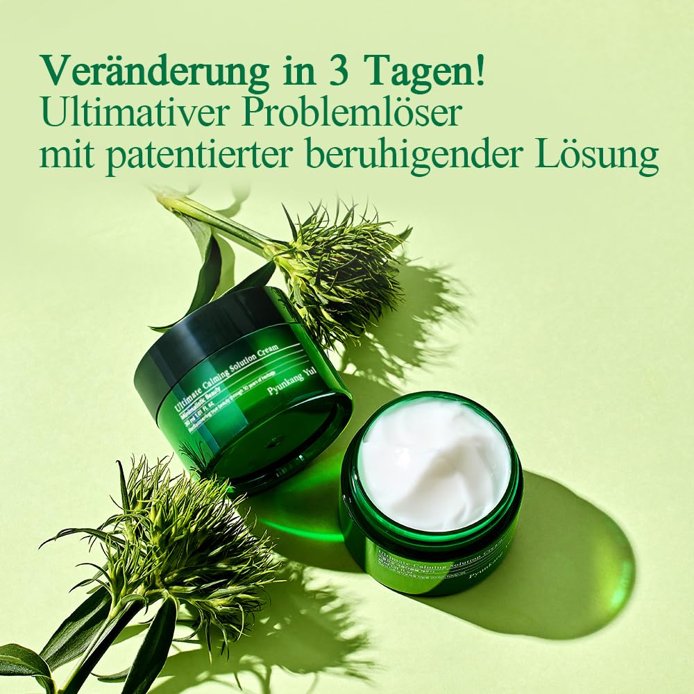 Die schnelle Rettung für gestresste und irritierte Haut! Die Pyunkang Yul Ultimate Calming Solution Cream ist eine hochkonzentrierte Spezialpflege, die entwickelt wurde, um selbst extrem empfindliche Haut sofort zu beruhigen. Durch die Kombination aus patentierten Wirkstoffen und bewährten Heilpflanzen der koreanischen Kosmetik bietet diese Creme eine effektive Lösung gegen Rötungen, Spannungsgefühle und Unreinheiten.