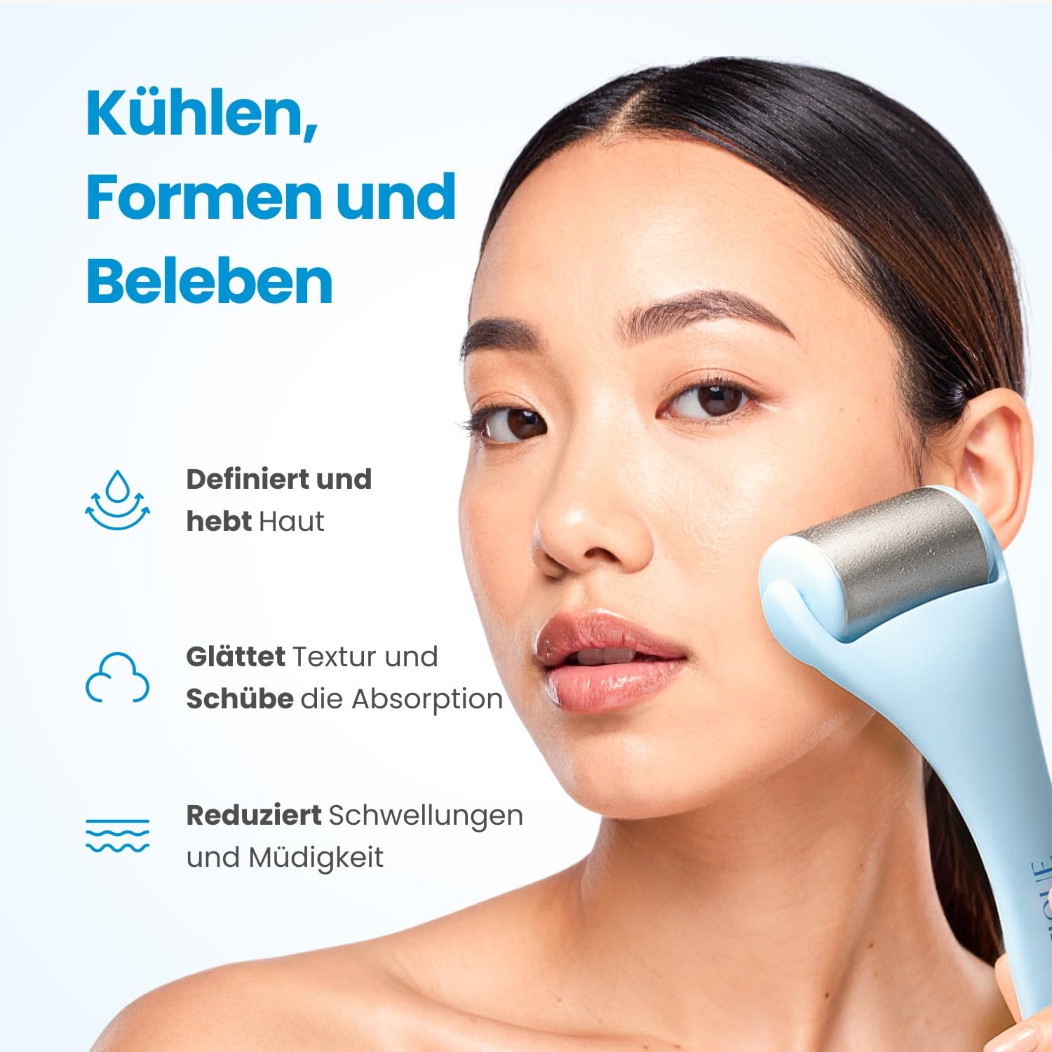• Reduziert Schwellungen und unterstützt Lymphfluss: Kühlt die Haut und regt die Durchblutung an, um Schwellungen zu mindern, feine Linien zu glätten und die Hautelastizität zu fördern.