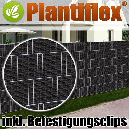 Plantiflex Sichtschutz Rolle 35m Blickdicht PVC Zaunfolie Windschutz für Doppelstabmatten Zaun (Rattan-Anthrazit)