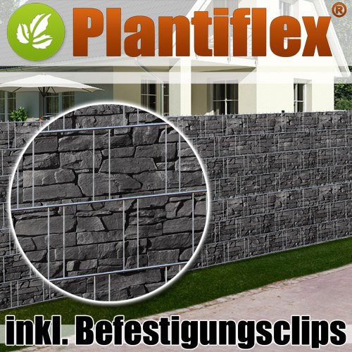 Plantiflex Sichtschutz Rolle 35m Blickdicht PVC Zaunfolie Windschutz für Doppelstabmatten Zaun (Schiefer)