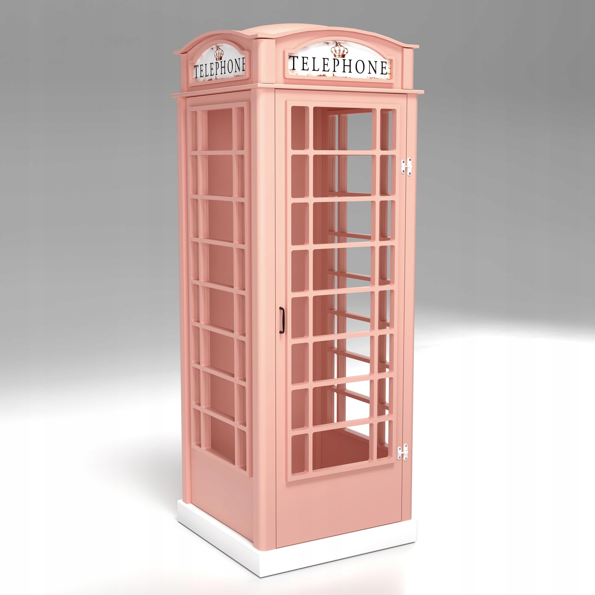PLASTIKO | Ein Kabinett | Schrank | Dekorative Vitrine in Form Einer englischen Telefonzelle | Ursprüngliches Formular | Für Kinder | Zum Unternehmen | 4 Einlegeböden | Funktional | Solide | Rose