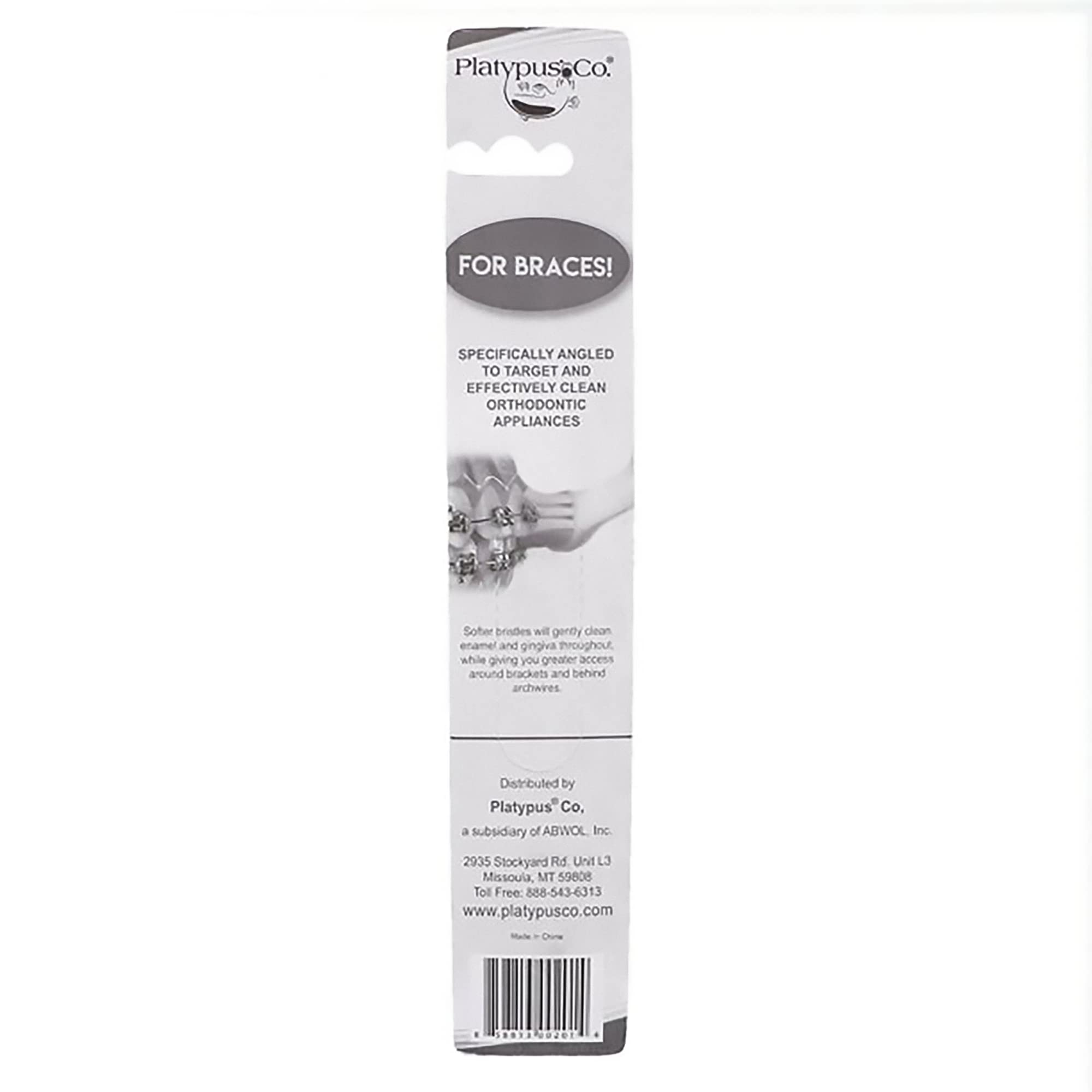 Platypus Orthodontic Toothbrush, Better Access over Brackets & Archwires, Silcone Grip, Helps to keep Teeth & Gums Clean