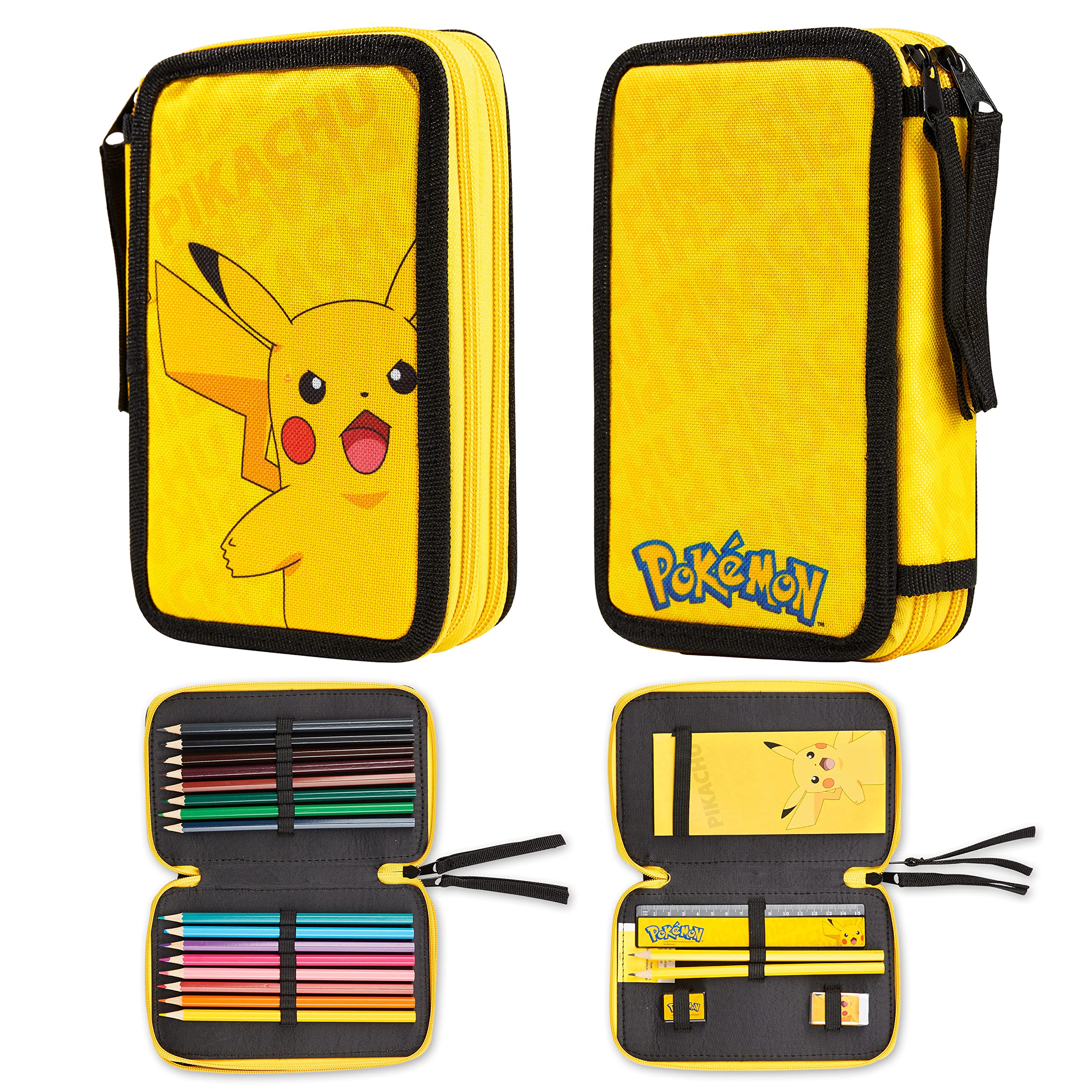 Pokemon Federmäppchen Jungen und Mädchen Mäppchen Gefüllt mit Schreibwaren Set Pikachu Geschenke für Kinder und Teenager (Pikachu)