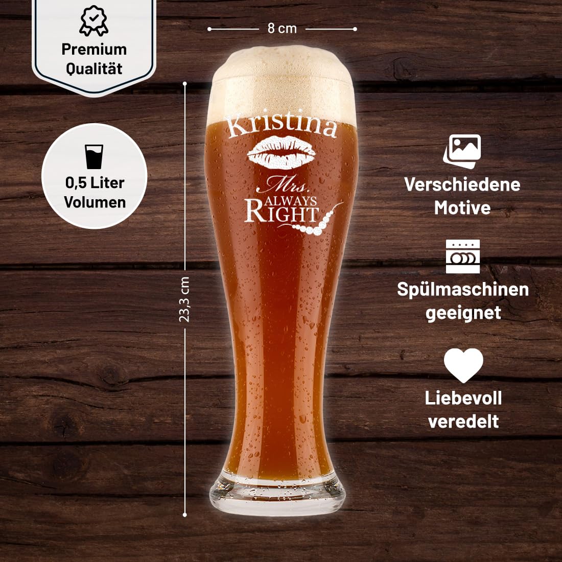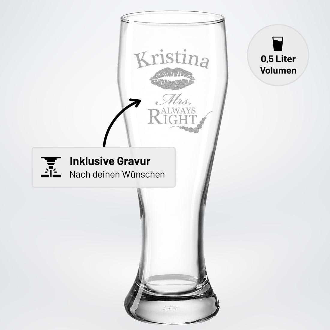 polar-effekt Weizenbierglas 0,5l Bierglas mit Gravur - Geschenke für Frauen - personalisierte Weizenglas Geschenkidee Geburtstagsgeschenk für Frau - Motiv Mrs. Always Right Frauengeschenk