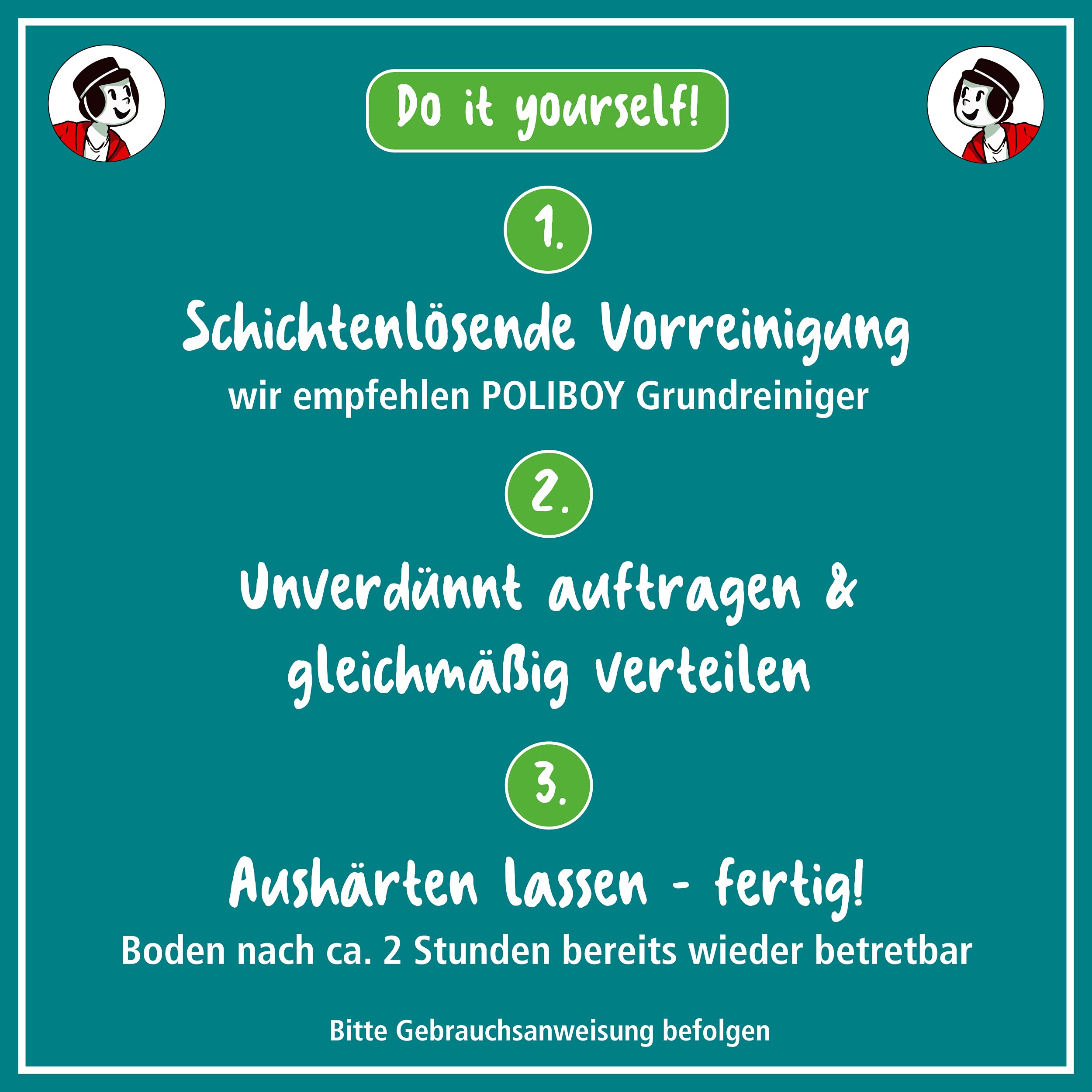 Poliboy Vinyl Renovator + Grundreiniger – Perfektes Set zur Pflege von Vinylböden – 2 x 500 ml (1000 ml) – Made in Germany. Set besteht aus 1 x 500 ml Vinyl Renovator und 1 x 500 ml Grundreiniger – perfekte Ergänzung, um alte, strapazierte Böden aufzufrischen Vinyl Vinyl-Renovierer: alte Möbel, beanspruchtes Vinyl, Vinylböden, Küchenböden, ohne den Einsatz von Werkzeugen oder Maschinen. Neue Schönheit für beanspruchte, alte, gebrauchte, verblasste Vinyl- und Küchenböden, deckt kleine Kratzer und Flecken ab und stellt die alte Farbe wieder her. Ideal für Auszug, Umzug, Altbausanierung, Neugestaltung. Oberflächenreiniger: Einsetzbar auf allen wasserfesten Böden wie Stein, Linoleum, PVC, versiegeltem Parkett und Laminat. Der Reiniger ist nicht für die Anwendung auf unversiegeltem Holz geeignet. Anwendung: Boden vorab reinigen und abwischen. Schütteln Sie die Produkte gut. Wurden zuvor schichtbildende Pflegeprodukte verwendet, entfernen Sie diese mit dem schichtlösenden Kraftreiniger Poliboy Grundreiniger. Tragen Sie den Vinyl-Renovierer direkt unverdünnt auf den sauberen Boden auf. Nicht einwirken lassen, sondern sofort mit einem feuchten Wischbezug gleichmässig verteilen. Gehen Sie abschnittsweise vor und erzeugen Sie einen gleichmässigen Flüssigkeitsfilm. Anschliessend gut trocknen lassen. Ein Qualitätsprodukt von Poliboy: der Klassiker für die Reinigung von Holzoberflächen mit hohen Ansprüchen – millionenfach bewährt und seit Jahrzehnten in Deutschland hergestellt und weltweit im Einsatz: Poliboy – pflegt wie neu!