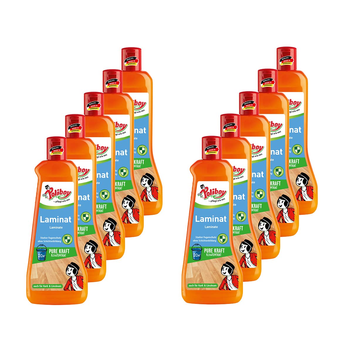 Poliboy - Laminat Pflege - Konzentrat mit Orangenöl - auch für Kork und Linoleum - Bodenreinigung - 10er Pack - 10x500 ml (5 Liter) - Made in Germany